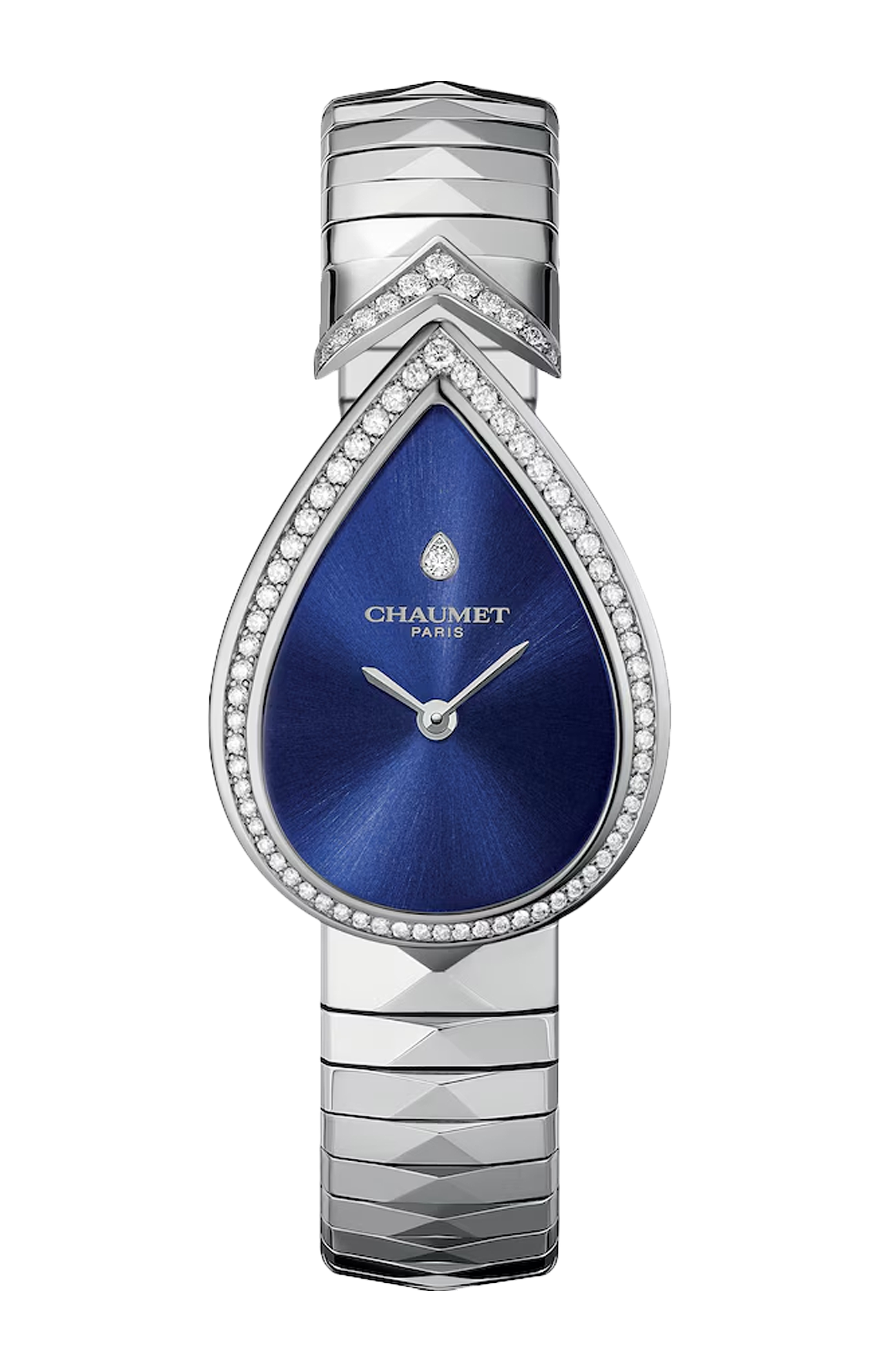 Continuando la tradizione dell'orologio-gioiello, la creazione Joséphine Aigrette mostra con amore l'emblematica forma a pera della maison. Chaumet rende omaggio alla sua musa senza tempo, con eleganza e carattere, scegliendo il taglio del diamante preferito dall'imperatrice Joséphine. Incastonato di diamanti, questo gioiello che racconta l'ora è allo stesso tempo femminile e moderno.