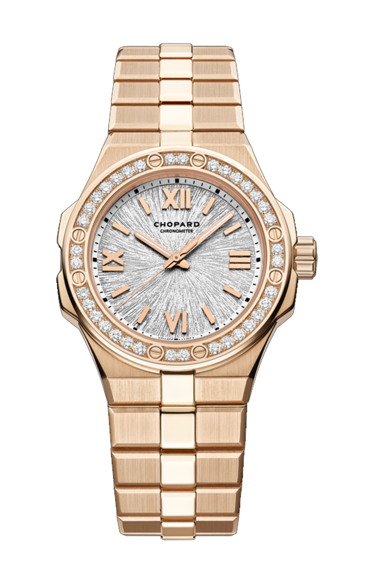 La nuova collezione di orologi Sporty-Chic Alpine Eagle, contemporanea, raffinata e dal look deciso, è l’odierna reinterpretazione del St Moritz, la prima creazione elaborata nel 1980 da Karl-Friedrich Scheufele, oggi co-presidente della Maison Chopard. Alpine Eagle, progettato e disegnato da quest’ultimo, concentra tutta la passione per le Alpi e per l’aquila che, con la sua forza altera, regna suprema su queste vette. L’orologio realizzato in oro etico rosa 18 carati batte al ritmo di un movimento con certificato di cronometria. Alpine Eagle è destinato alle “aquile contemporanee”, quegli uomini ispiratori che seguono una visione e raggiungono qualunque obiettivo nella vita quotidiana. Con lungimiranza e determinazione, raccolgono le sfide di domani, mossi dalle stringenti problematiche ambientali.