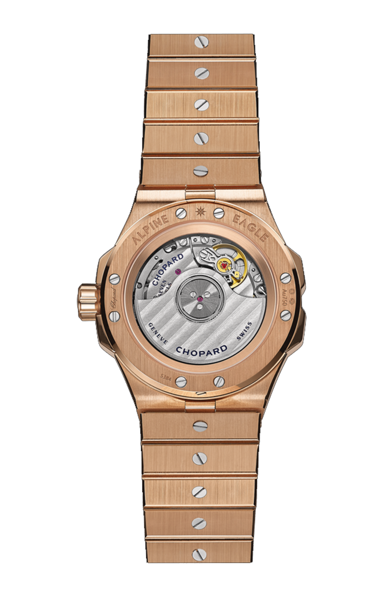 La nuova collezione di orologi Sporty-Chic Alpine Eagle, contemporanea, raffinata e dal look deciso, è l’odierna reinterpretazione del St Moritz, la prima creazione elaborata nel 1980 da Karl-Friedrich Scheufele, oggi co-presidente della Maison Chopard. Alpine Eagle, progettato e disegnato da quest’ultimo, concentra tutta la passione per le Alpi e per l’aquila che, con la sua forza altera, regna suprema su queste vette. L’orologio realizzato in oro etico rosa 18 carati batte al ritmo di un movimento con certificato di cronometria. Alpine Eagle è destinato alle “aquile contemporanee”, quegli uomini ispiratori che seguono una visione e raggiungono qualunque obiettivo nella vita quotidiana. Con lungimiranza e determinazione, raccolgono le sfide di domani, mossi dalle stringenti problematiche ambientali.