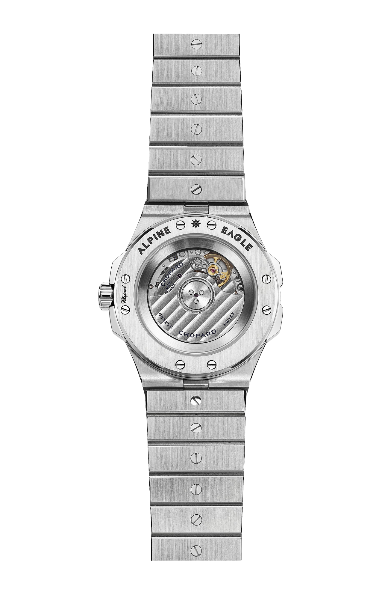 Contemporanea, raffinata e assertiva, la nuova collezione di orologi Alpine Eagle è una moderna reinterpretazione del St Moritz, il primo orologio creato nel 1980 da Karl-Friedrich Scheufele, attualmente co-presidente dell'azienda Chopard. Immaginato e personalmente progettato da lui, il modello Alpine Eagle è stato ispirato dalla sua passione per le Alpi e dal nobile potere dell'aquila che regna sovrana su queste montagne. Realizzato nell'esclusivo metallo ultraresistente e fotoriflettente Lucent Steel™, batte al ritmo di un movimento certificato cronometro. Alpine Eagle è dedicato alle aquile contemporanee, le persone ambiziose che ottengono eccellenti prestazioni nelle loro vite quotidiane e la cui visione è fonte di ispirazione e miglioramento. Affrontano con lungimiranza e determinazione le sfide del domani e sono naturalmente consapevoli dell'importanza delle problematiche ambientali.
