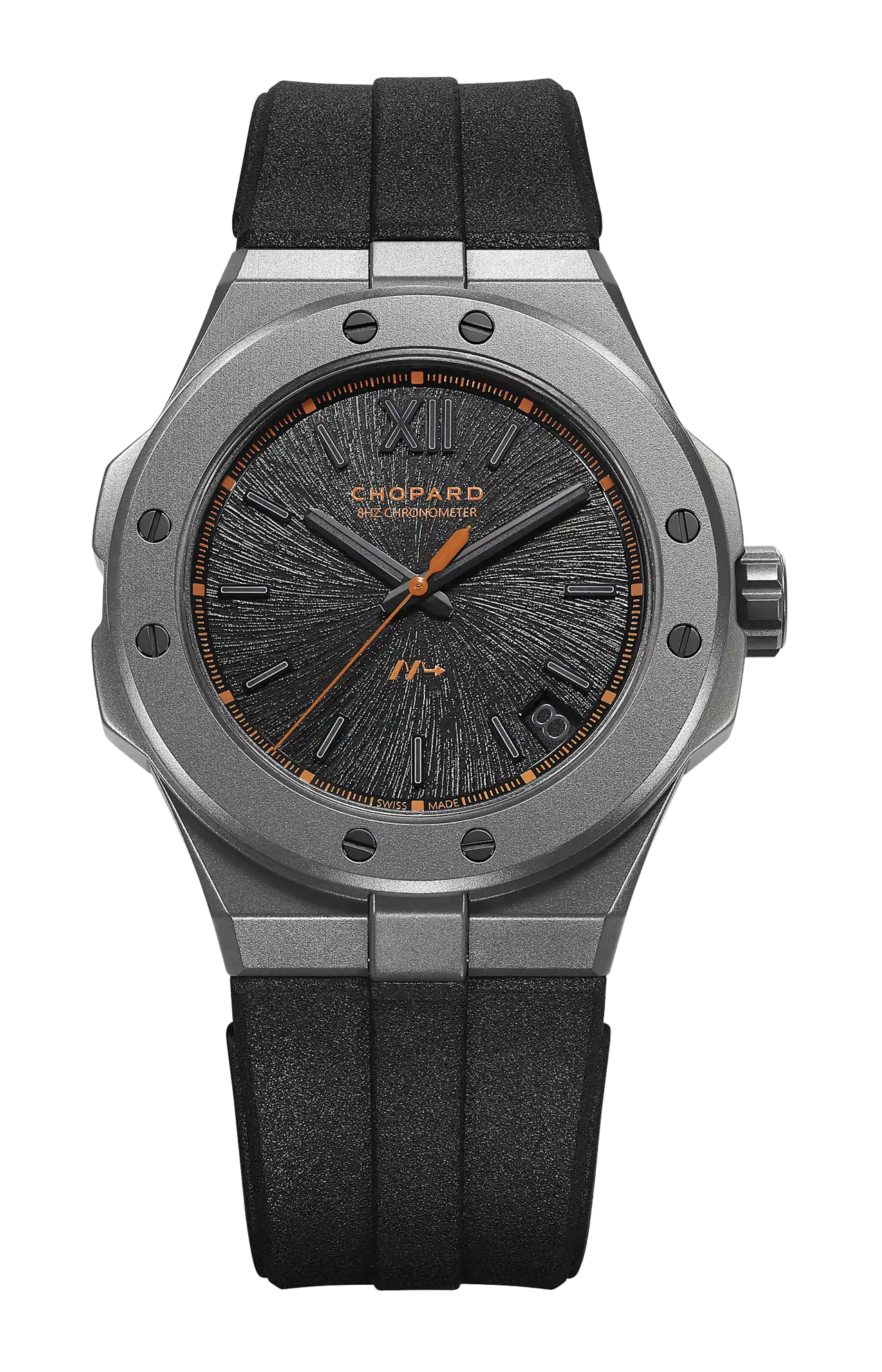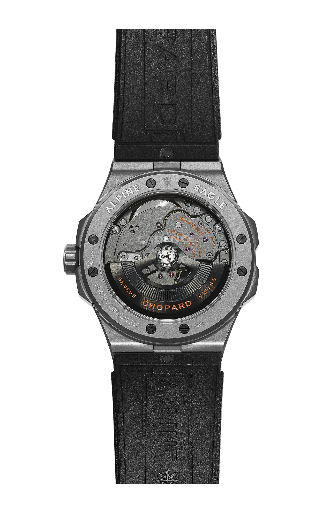 Presentata nel 2019, la collezione Alpine Eagle non ha mai smesso di arricchirsi di nuove prodezze tecniche. Con la terza edizione di segnatempo ad alta frequenza, ha raggiunto un nuovo traguardo presentando l'orologio più leggero non soltanto della collezione, ma di Chopard in generale. Per raggiungere questo obiettivo, non solo la cassa di 41 millimetri, ma anche la corona, il quadrante e il movimento del modello Alpine Eagle 41 SL Cadence 8HF, disponibile in edizione limitata a 250 esemplari, sono realizzati in titanio rivestito in ceramica. Al titanio viene applicata una finitura microsabbiata sportiva, mentre il quadrante nero assoluto crea un gioco di contrasti grazie alle raffinate note arancioni. Alpine Eagle 41 SL Cadence 8HF è sinonimo di precisione, stile e sportività.