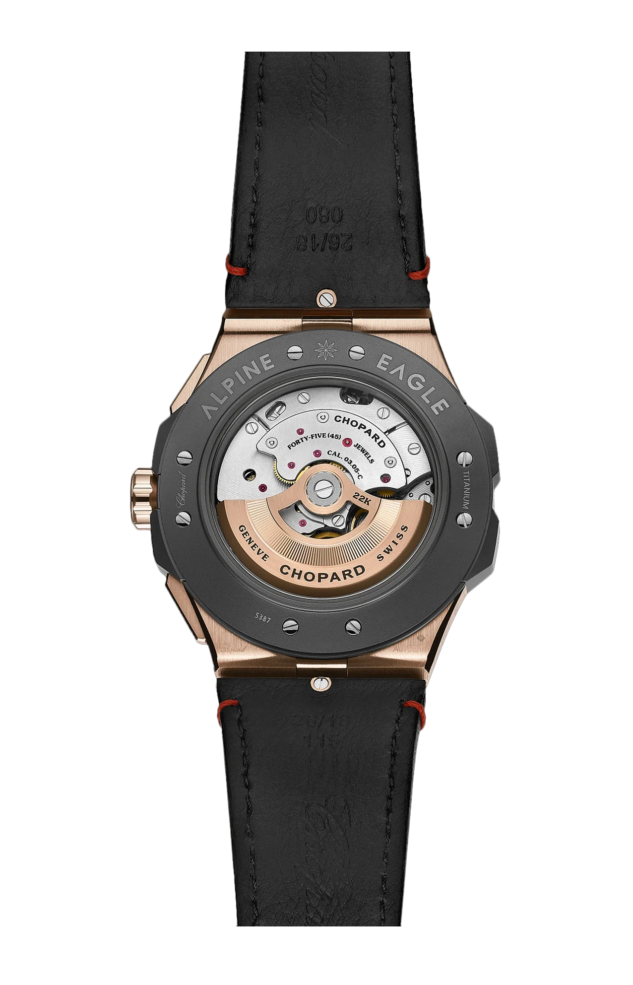 Il nuovo segnatempo Alpine Eagle XL Chrono, elegante e sportivo, è la moderna interpretazione del St. Moritz presentato nel 1980, il primo orologio disegnato da Karl-Friedrich Scheufele, l’attuale co-presidente di Chopard. Alpine Eagle XL Chrono in oro etico rosa 18 carati e titanio ceramizzato esprime tutta la passione del suo creatore per le Alpi ed è direttamente ispirato alla nobiltà delle aquile. Nel suo interno ospita un movimento cronografico di lusso con certificato di cronometria e funzione flyback. Alpine Eagle è dedicato alle “aquile contemporanee”, quegli uomini ispiratori che seguono una visione e raggiungono qualunque obiettivo nella vita quotidiana. Con lungimiranza e determinazione, raccolgono le sfide di domani, mossi dalle stringenti problematiche ambientali.