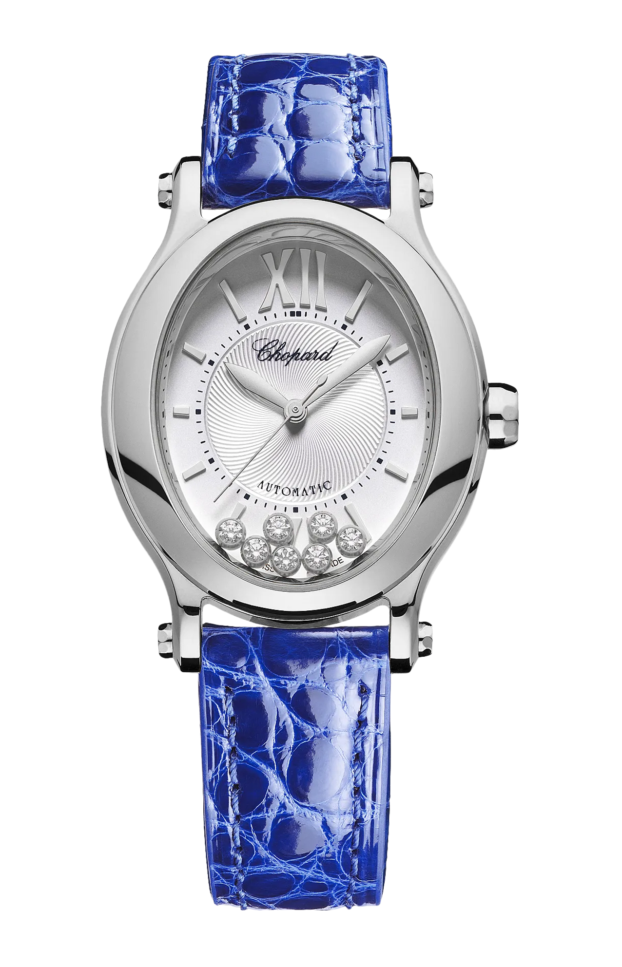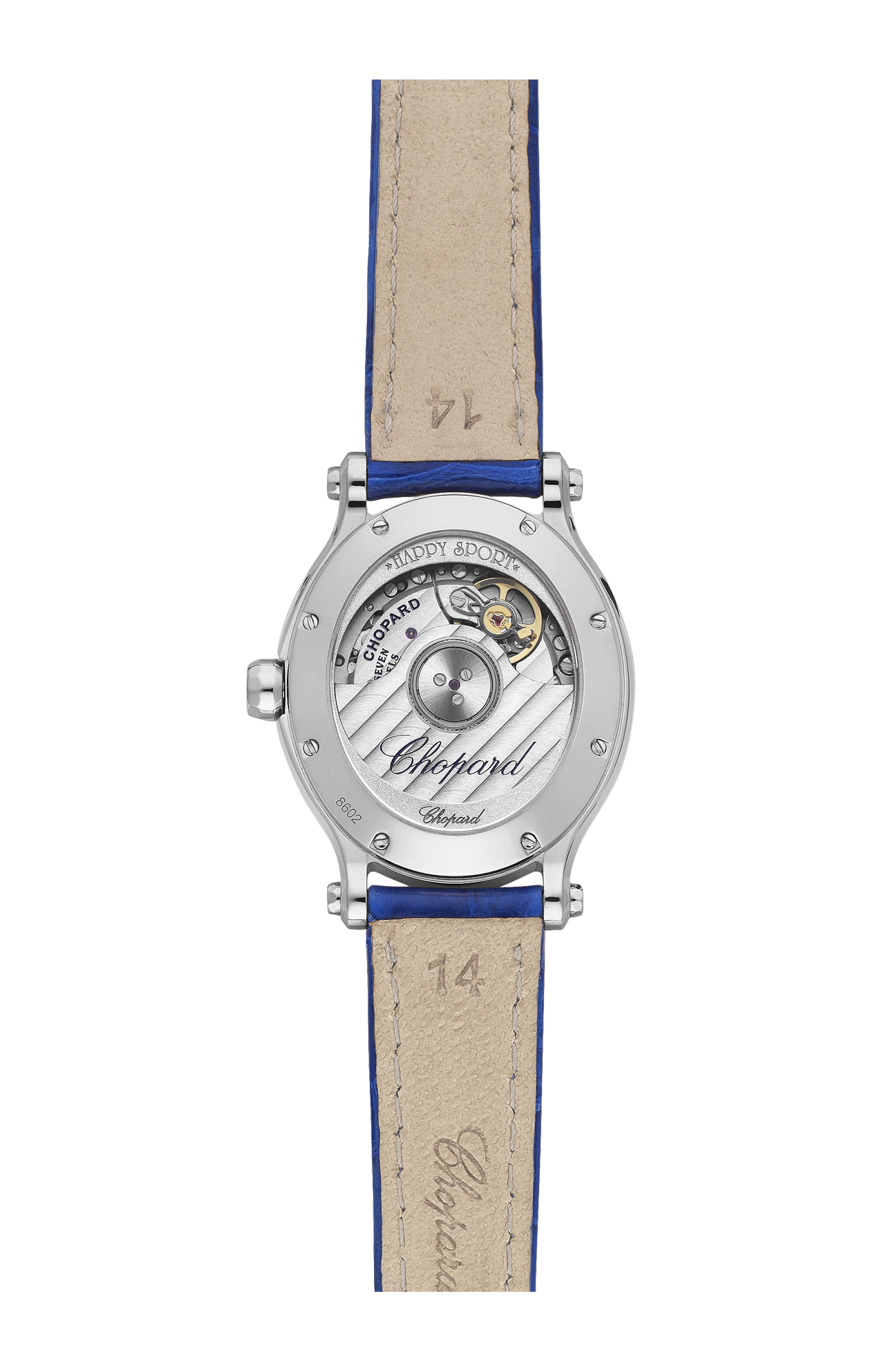 La collezione Happy Sport è l'emblema della creatività e dell'audacia di Chopard. Le sue gioiose pietre preziose, che danzano liberamente tra due vetri zaffiro, fanno sognare sin dal 1993, quando Chopard è diventata la prima maison a coniugare acciaio e diamanti. La grande competenza orologiera ha consentito a Chopard di dotare il modello Happy Sport Oval di un movimento meccanico a carica automatica appositamente sviluppato per le casse dei modelli femminili. Little Diamonds Do Great Things.