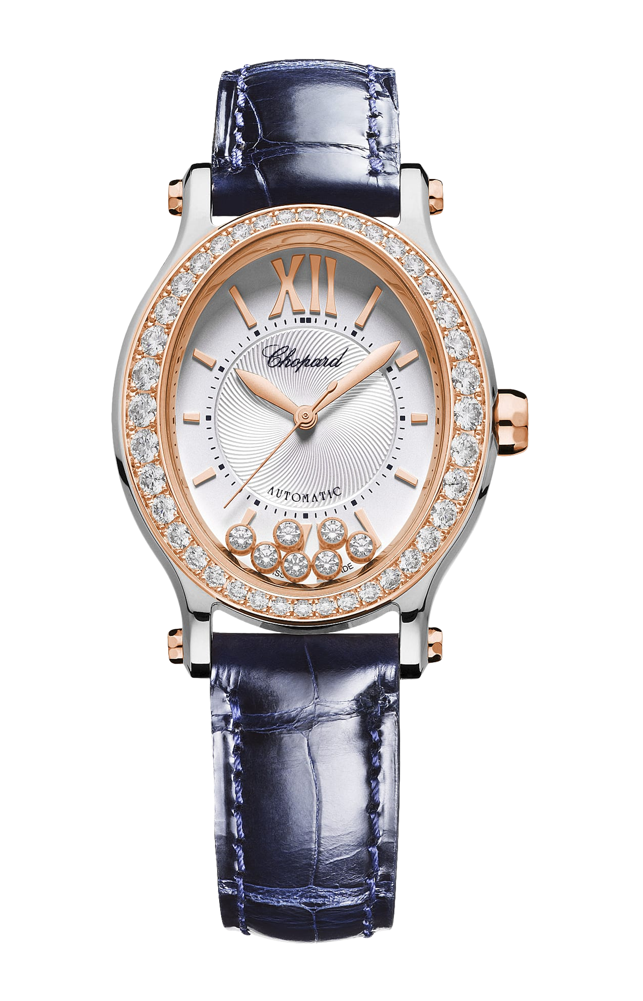 La collezione Happy Sport è l'emblema della creatività e dell'audacia di Chopard. Le sue gioiose pietre preziose, che danzano liberamente tra due vetri zaffiro, fanno sognare sin dal 1993, quando Chopard è diventata la prima maison a coniugare acciaio e diamanti. La grande competenza orologiera ha consentito a Chopard di dotare il modello Happy Sport Oval di un movimento meccanico a carica automatica appositamente sviluppato per le casse dei modelli femminili. Little Diamonds Do Great Things.