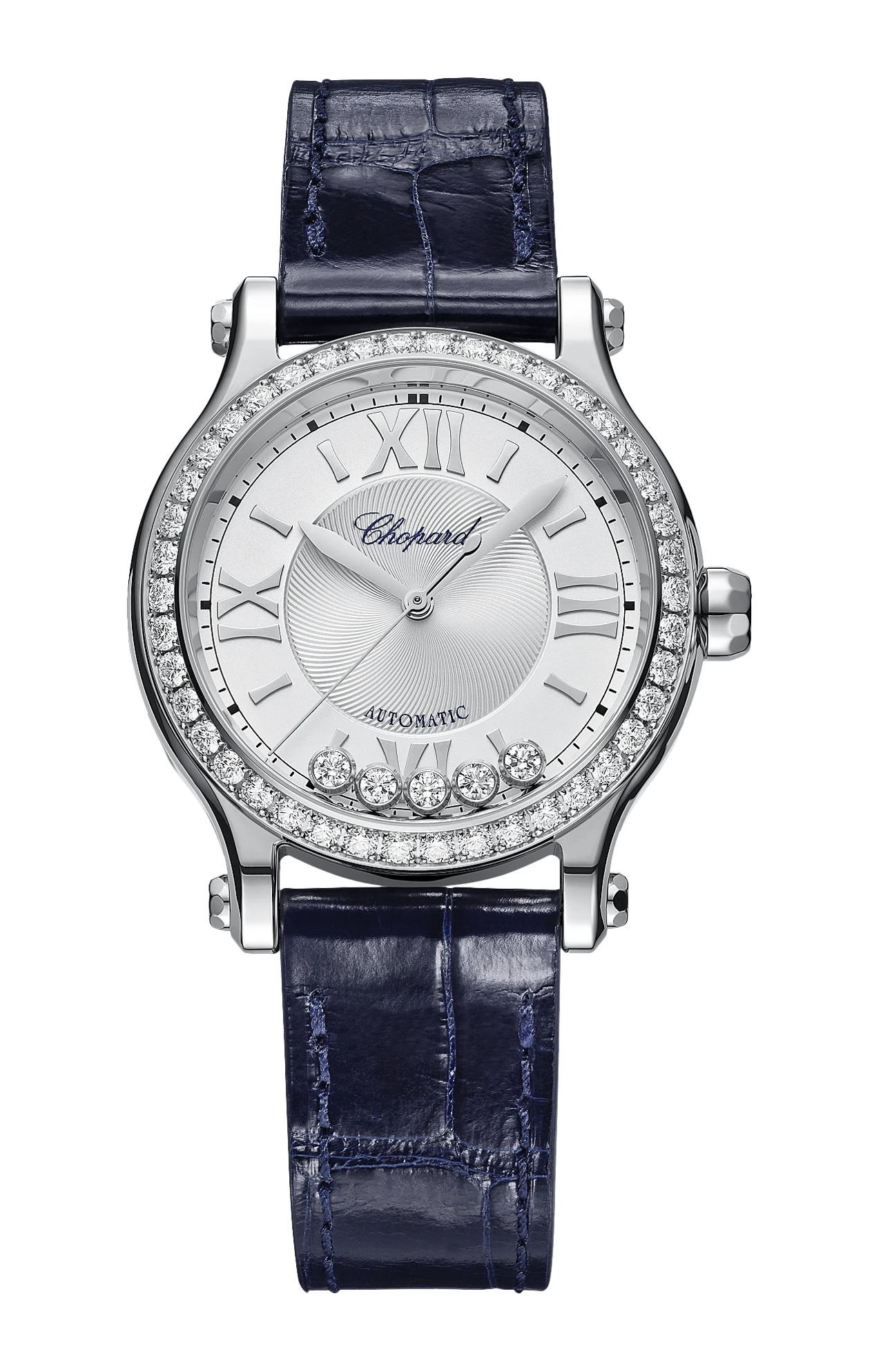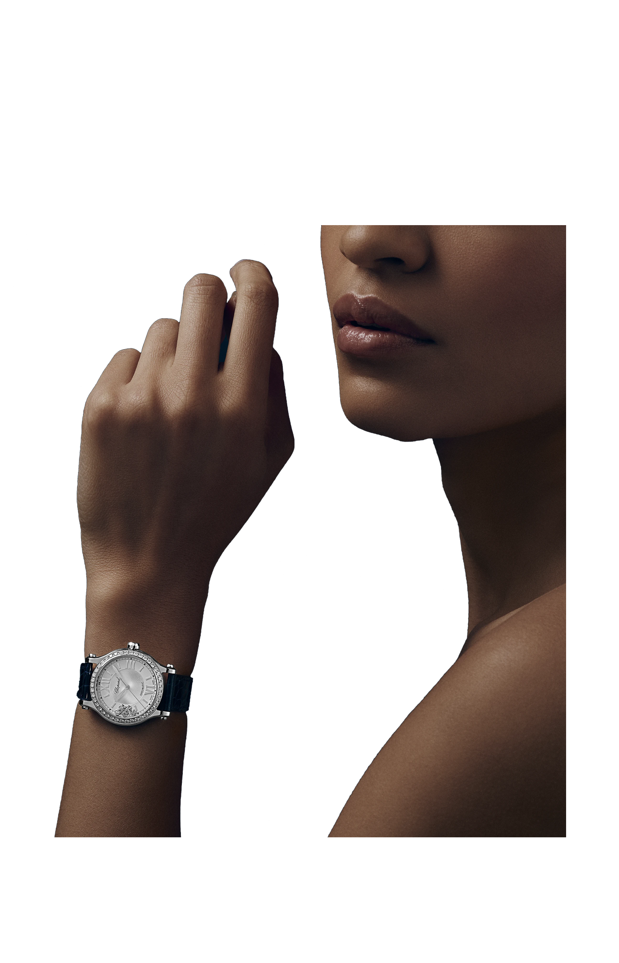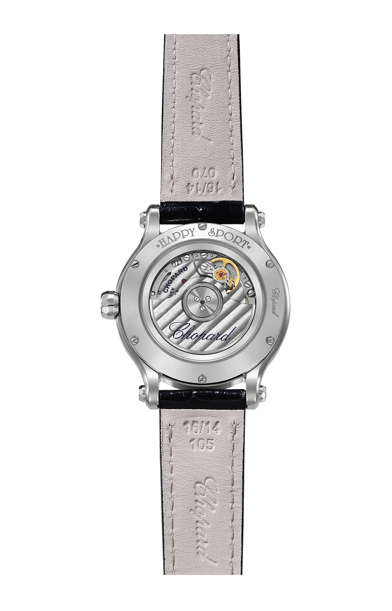 La collezione Happy Sport è l'emblema della creatività e dell'audacia di Chopard. Le sue gioiose pietre preziose, che danzano liberamente tra due vetri zaffiro, fanno sognare sin dal 1993, quando Chopard è diventata la prima maison a coniugare acciaio e diamanti. La grande competenza orologiera ha consentito a Chopard di dotare il modello Happy Sport da 33 mm di un movimento meccanico a carica automatica appositamente sviluppato per le casse dei modelli femminili. Little Diamonds Do Great Things.