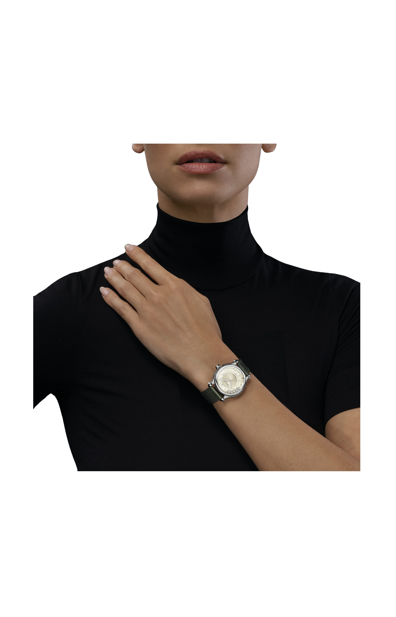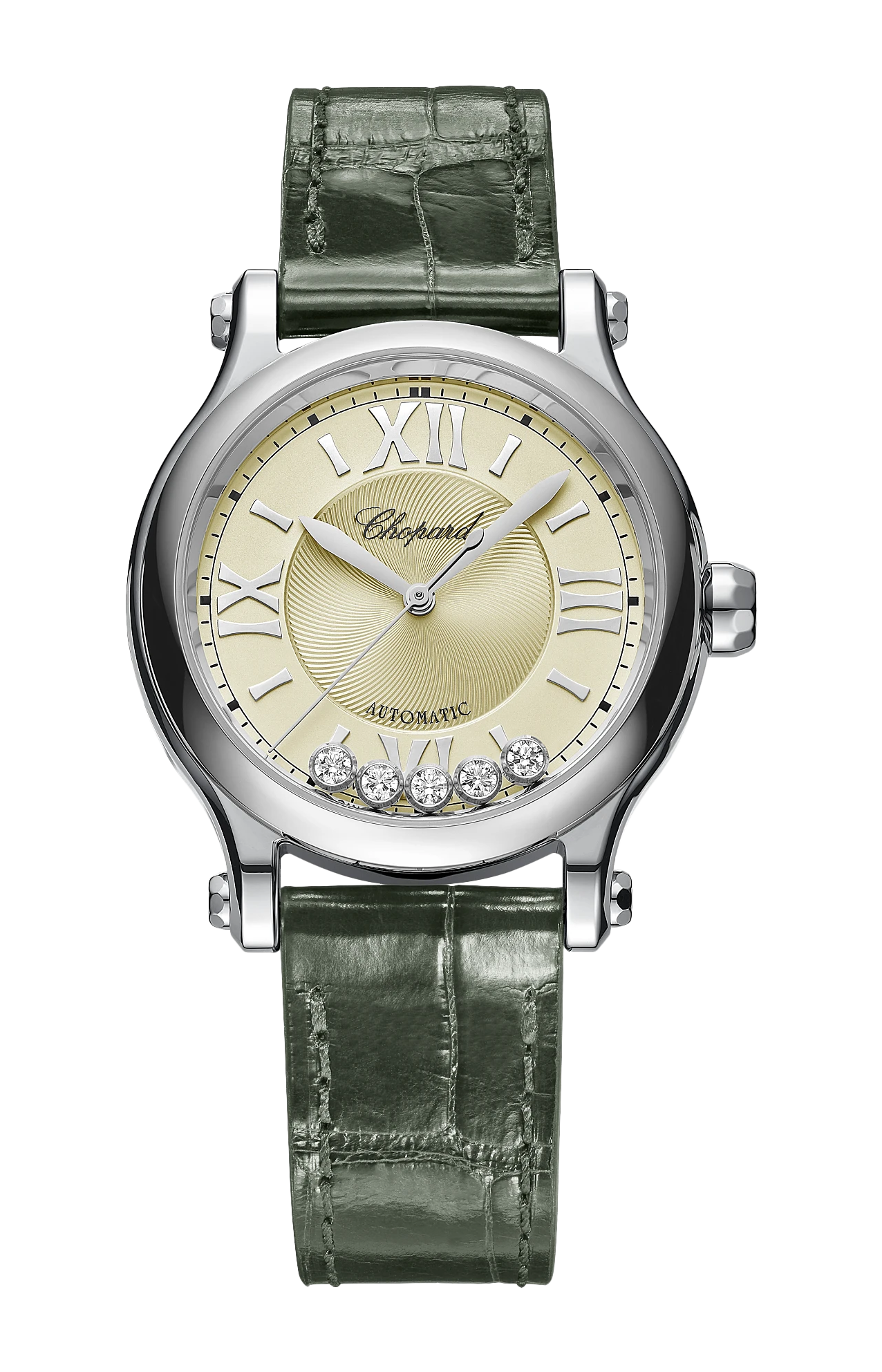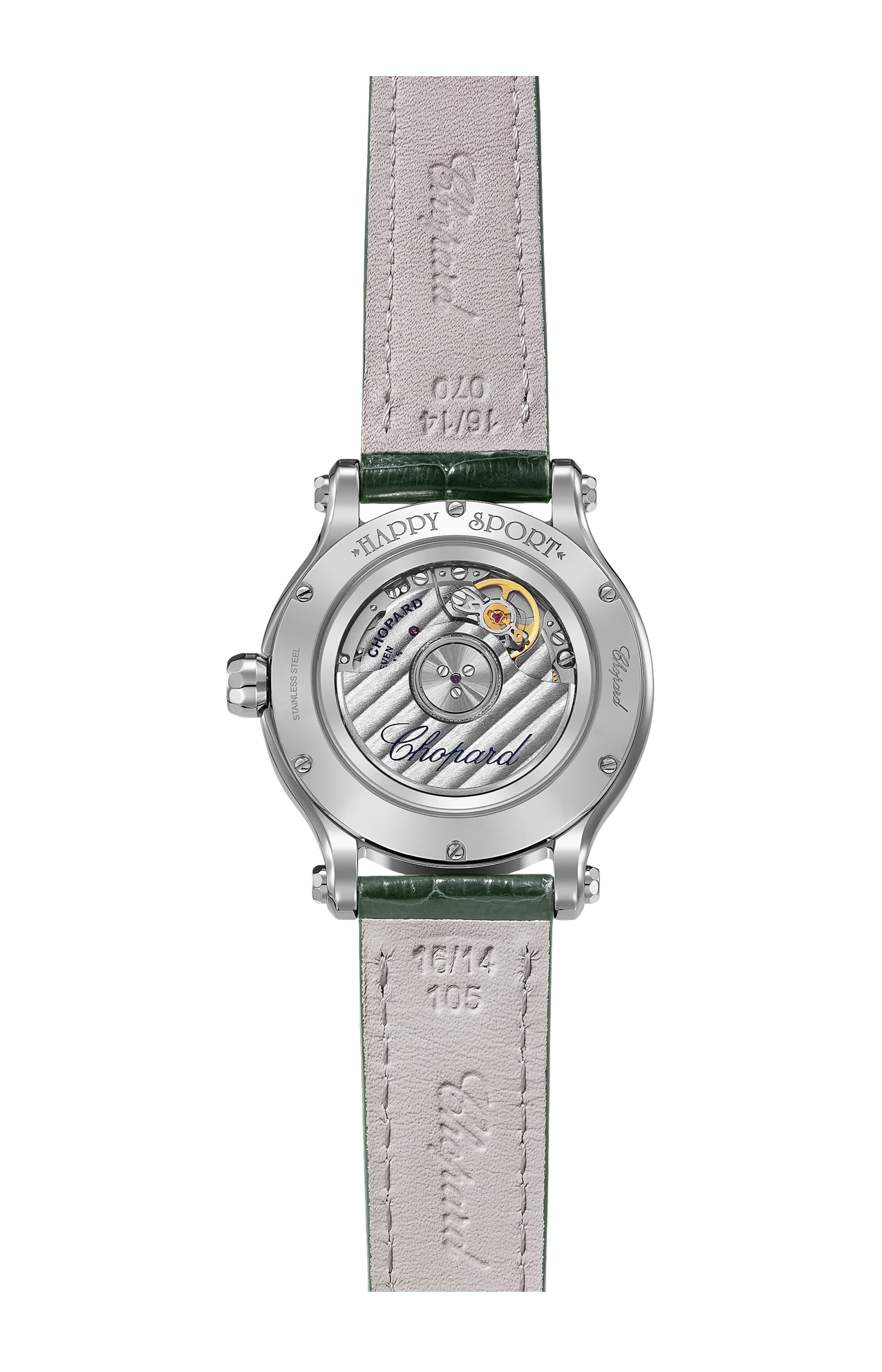 La collezione Happy Sport è l'emblema della creatività e dell'audacia di Chopard. Le sue gioiose pietre preziose, che danzano liberamente tra due vetri zaffiro, fanno sognare sin dal 1993, quando Chopard è diventata la prima maison a coniugare acciaio e diamanti. La grande competenza orologiera ha consentito a Chopard di dotare il modello Happy Sport da 33 mm di un movimento meccanico a carica automatica appositamente sviluppato per le casse dei modelli femminili. Little Diamonds Do Great Things.