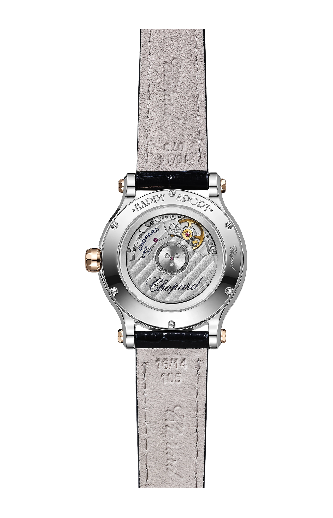 La collezione Happy Sport è l'emblema della creatività e dell'audacia di Chopard. Le sue gioiose pietre preziose, che danzano liberamente tra due vetri zaffiro, fanno sognare sin dal 1993, quando Chopard è diventata la prima maison a coniugare acciaio e diamanti. La grande competenza orologiera ha consentito a Chopard di dotare il modello Happy Sport Oval di un movimento meccanico a carica automatica appositamente sviluppato per le casse dei modelli femminili. Little Diamonds Do Great Things.