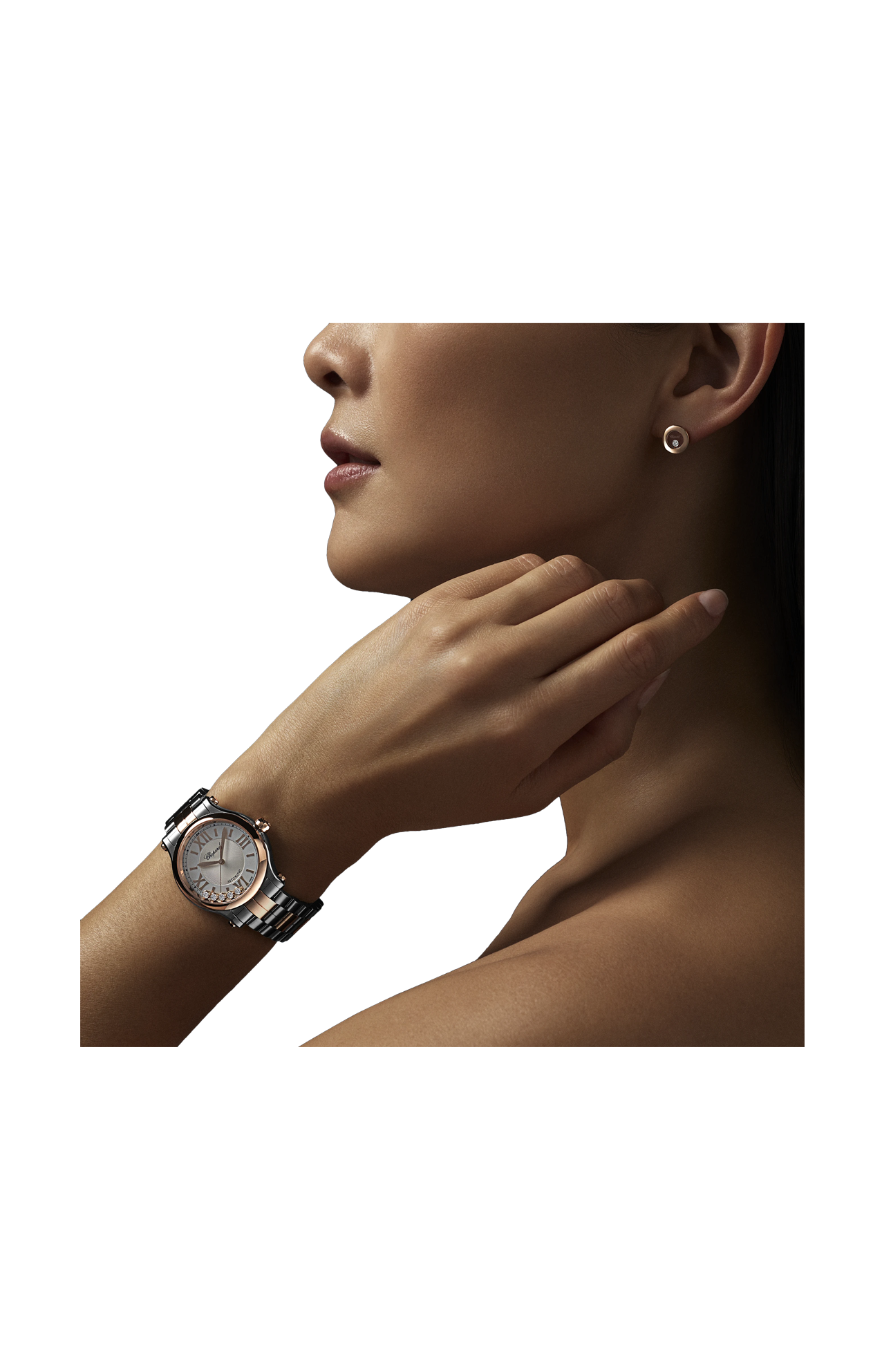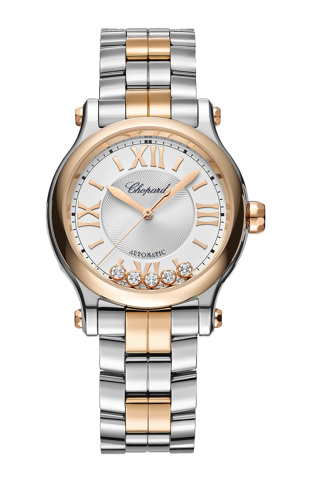 Happy sport 33 mm, automatico, oro rosa etico, lucent steel™, diamanti - 278608