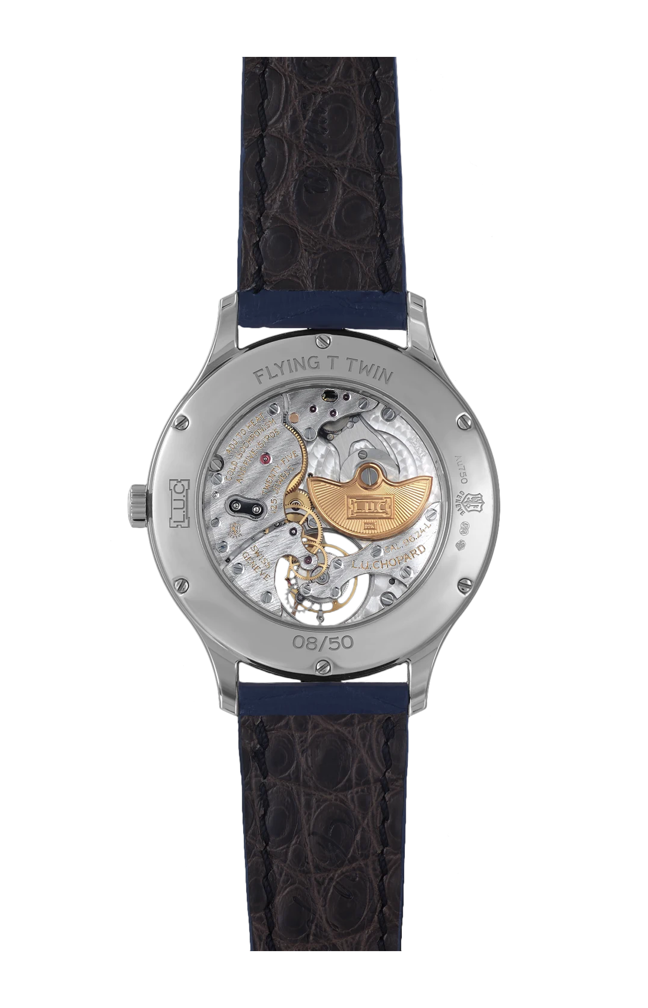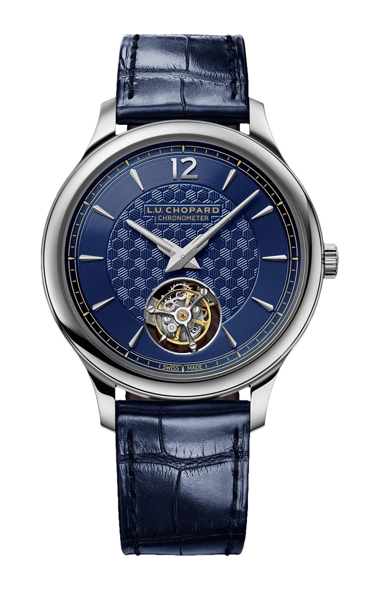 Con il L.U.C Flying T Twin, Chopard presenta un nuovo orologio dotato del suo movimento tourbillon volante di manifattura. Questo straordinario esemplare, tanto tecnico quanto estetico, risalta nella collezione L.U.C per il suo look: quadrante blu in oro guilloché a mano, proporzioni impeccabili e cassa ultrapiatta in oro etico bianco 18 carati. La serie limitata di cinquanta raffinati esemplari è progettata per i gentleman contemporanei che apprezzano l’orologeria di qualità e vanta il punzone di Ginevra e il certificato di cronometria del COSC.