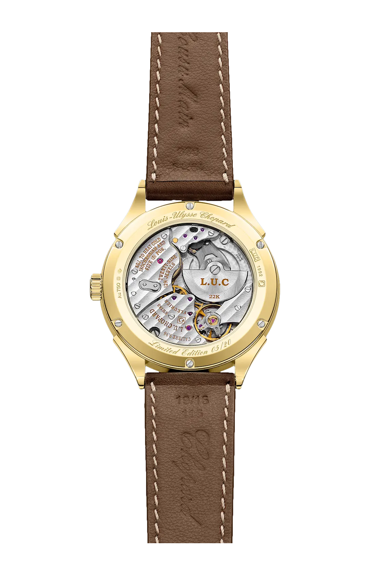 Per celebrare il 20° anniversario del primo modello Qualitè Fleurier, Chopard è orgogliosa di presentare un nuovo segnatempo in oro giallo. Questo lancio riconferma l'impegno costante di Chopard a favore dei valori dell'alta orologeria sostenuti dalla Fondation Qualitè Fleurier, rinomata per i suoi standard rigorosi. Emblema dell'eccellenza e della maestria innovativa della manifattura Chopard, questo modello è dotato del movimento L.U.C 96.09-L, celebrato per il suo cronometro di precisione certificato e dotato della tecnologia Chopard Twin. Oltre alla notevole precisione, il marchio di eccellenza della Fondation Qualitè Fleurier garantisce anche l'affidabilità, la resistenza e le squisite finiture estetiche dell'orologio. Edizione limitata a 20 esemplari.