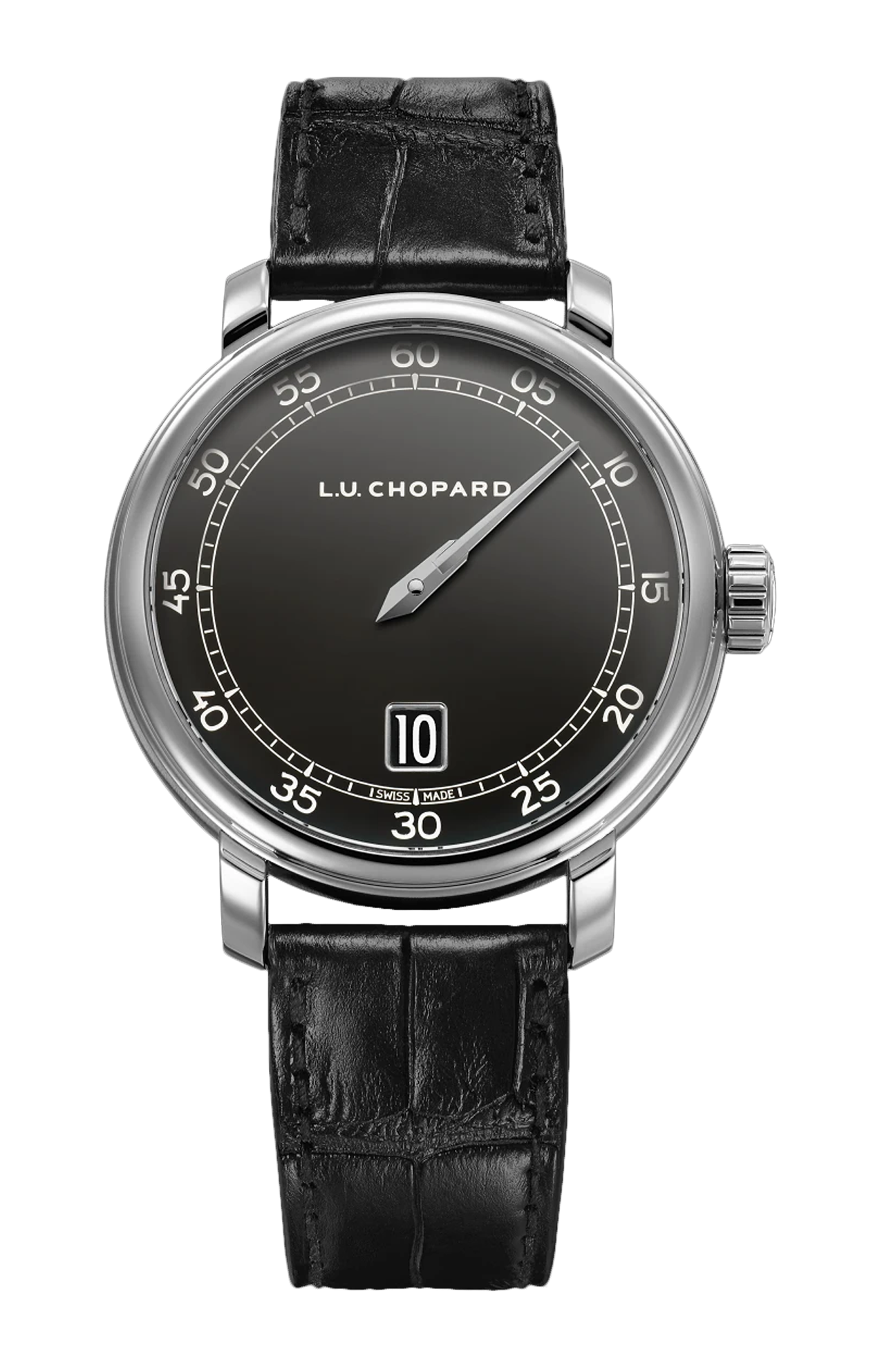 Il movimento a ore saltanti L.U.C 98.06-L, una prodezza tecnica presentata per la prima volta in occasione del 25° anniversario di Chopard Manufacture, alimenta il nuovo segnatempo L.U.C Quattro Spirit 25 in edizione limitata di 100 esemplari. I quattro bariletti dell’esclusiva tecnologia Chopard Quattro, che permettono una riserva di carica di otto giorni, fanno di questo modello tecnicamente ricercato uno dei rari orologi a ore saltanti dotato di una tale autonomia. La cassa di 40 millimetri di diametro in oro etico bianco 18 carati, dalle linee essenziali caratteristiche della collezione L.U.C, accoglie un quadrante nero in smalto grand feu realizzato con un processo artigianale dallo smaltatore di Chopard Manufacture. Dal movimento al quadrante, questo straordinario segnatempo è la vetrina delle migliori competenze dagli artigiani artisti che lavorano all’interno dei laboratori della maison, che garantiscono il massimo livello di finiture riconosciute dal prestigioso punzone di Ginevra.