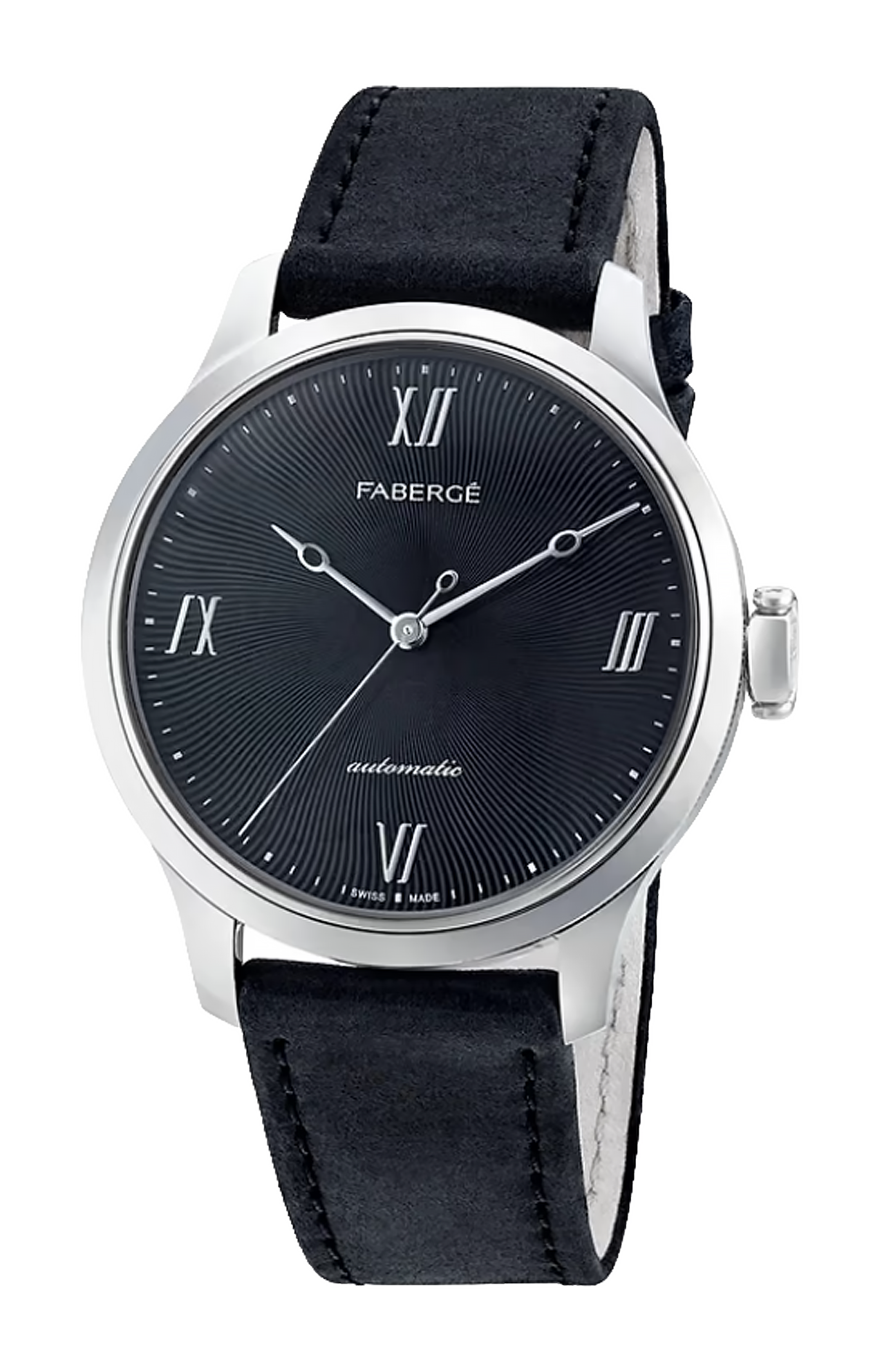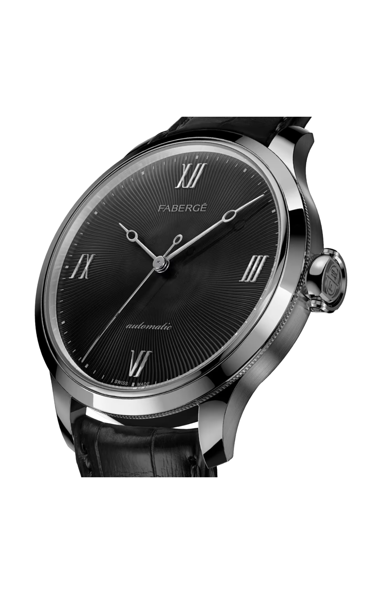 L'orologio Fabergé Altruist Black Timepiece è caratterizzato da un quadrante guilloché inciso a mano con opalino in nichel nero, corona Fabergé in oro bianco 18 carati e movimento automatico Vaucher Manufacture, racchiuso in una cassa in oro bianco 18 carati da 41 mm, con cinturino in alligatore.