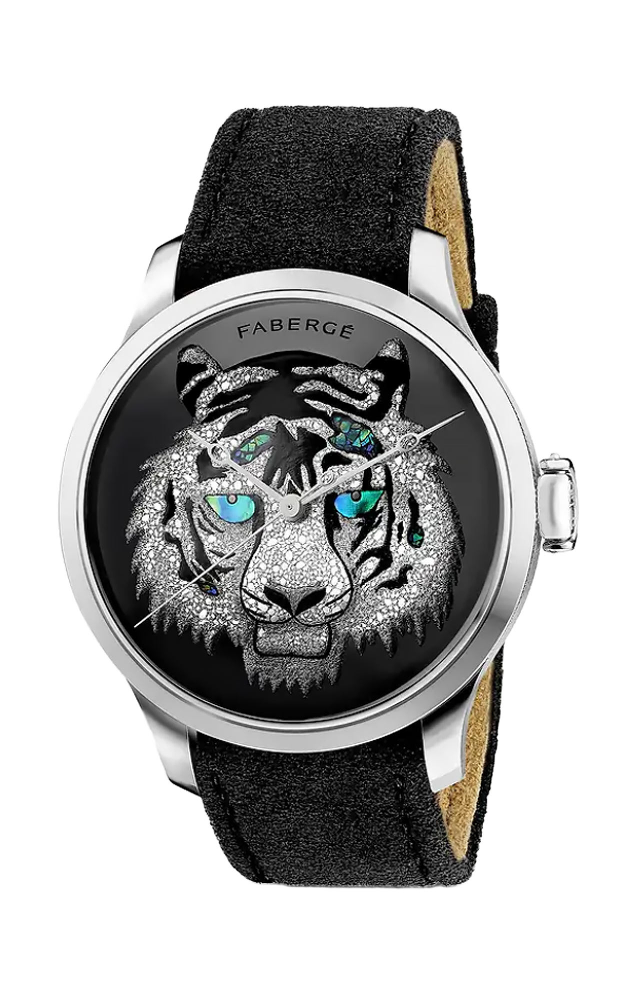 Realizzate in oro 18k, queste creazioni presentano una tecnica artigianale mai utilizzata prima negli orologi Fabergé : l'antica arte giapponese del Kaga-Maki-e. La collezione in edizione limitata presenta tre quadranti decorati a mano, raffiguranti una tigre, un leone e un'aquila. Questi potenti animali sono stati applicati a ogni quadrante da un'artigiana Maki-e in Giappone, e ognuno di essi ha richiesto due o tre mesi per essere dipinto a mano con cura.