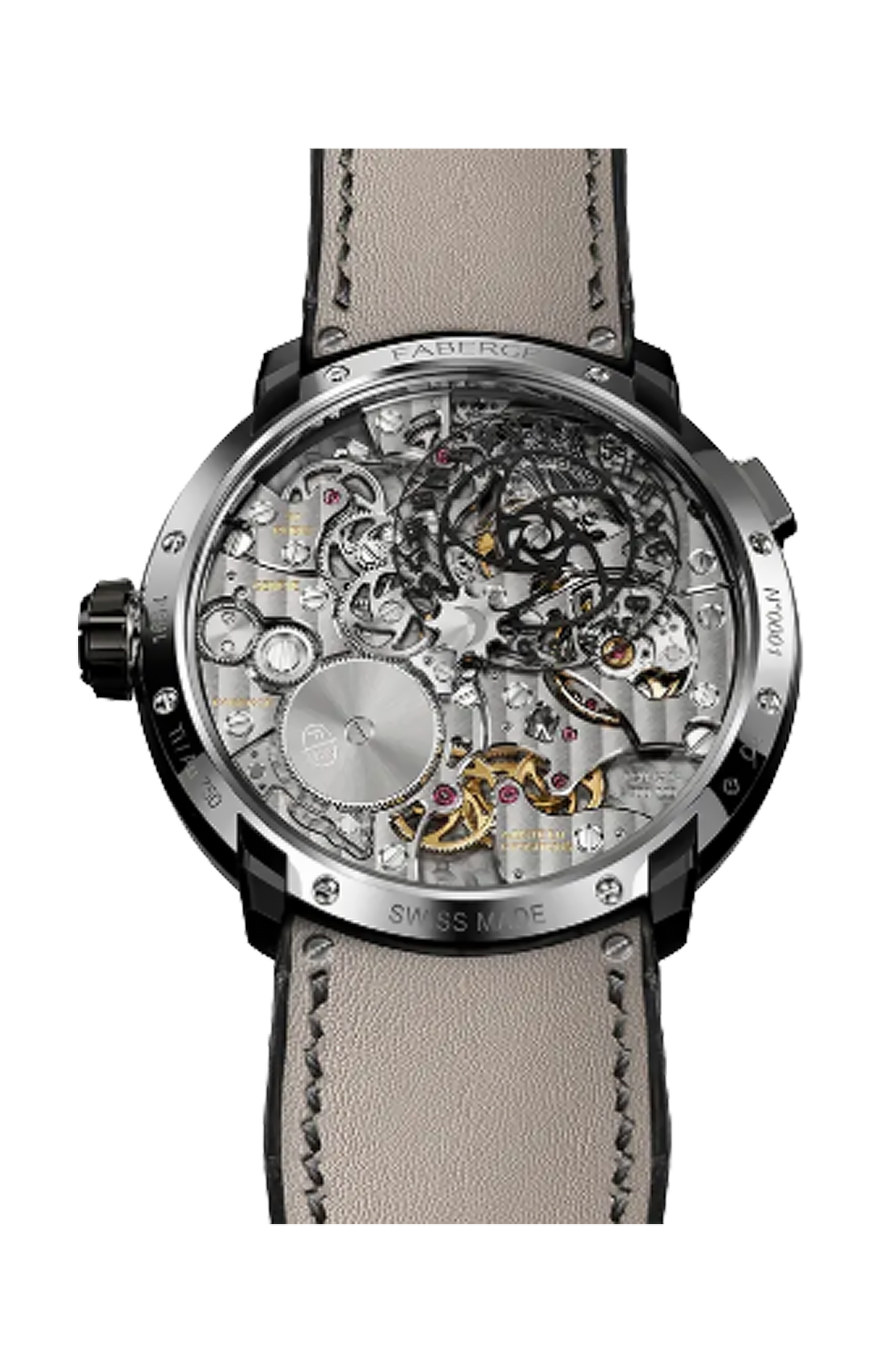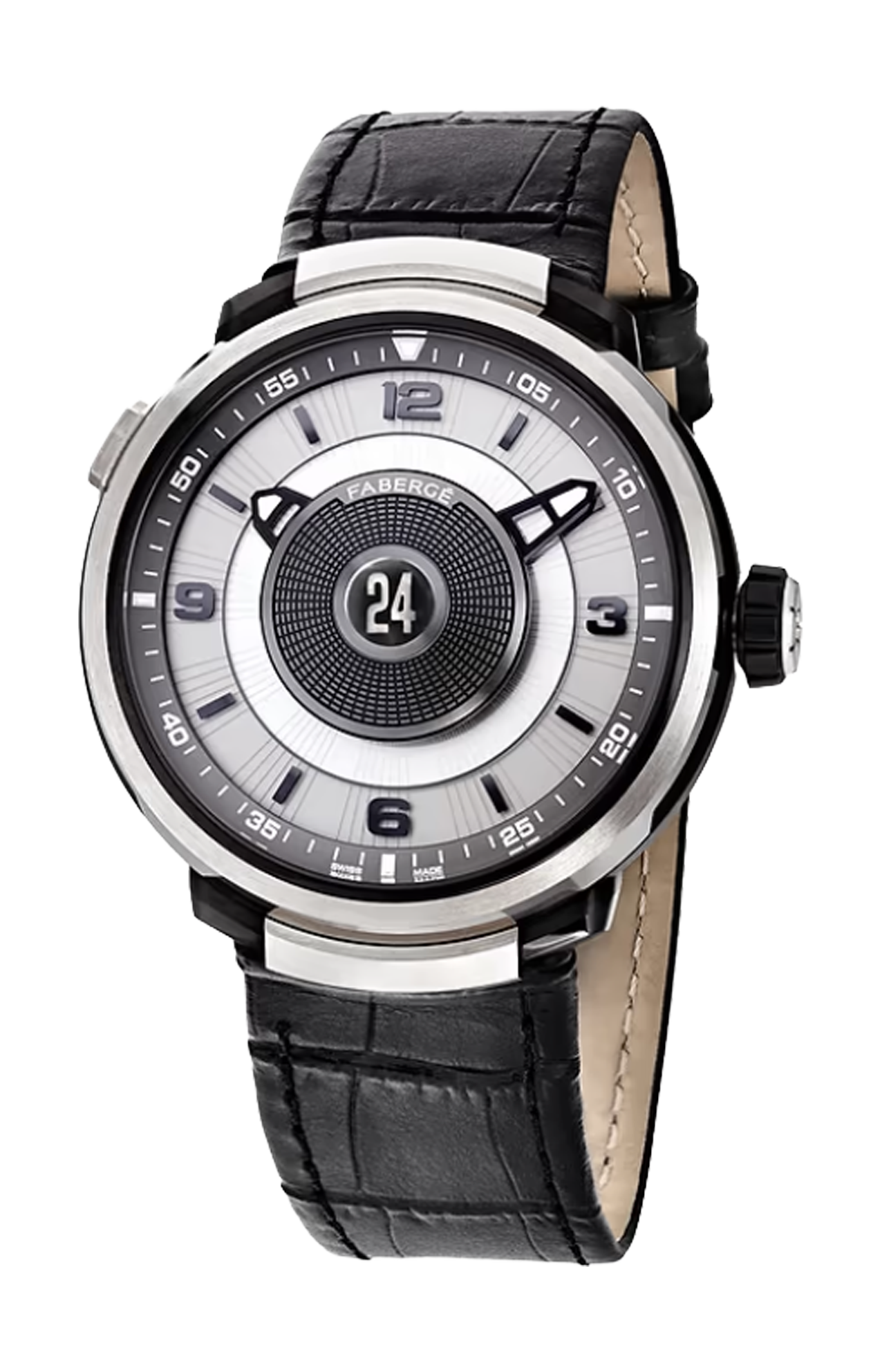 Il Fabergé Visionnaire DTZ a carica automatica utilizza un movimento progettato esclusivamente per Fabergé da Agenhor Manufacture. Il modello adotta un metodo logico e intuitivo per visualizzare due fusi orari contemporaneamente, perfettamente adatto allo stile di vita di coloro che hanno bisogno di tenere traccia del tempo in una seconda posizione distante. Le ore e i minuti del fuso orario locale sono presentati con lancette periferiche traforate che ruotano attorno a una cupola decorata e rialzata situata al centro del quadrante. L'ora del secondo fuso orario remoto è visualizzata attraverso una straordinaria apertura al centro della cupola, amplificata otticamente per una finitura audace, una caratteristica che sicuramente sorprenderà e delizierà.