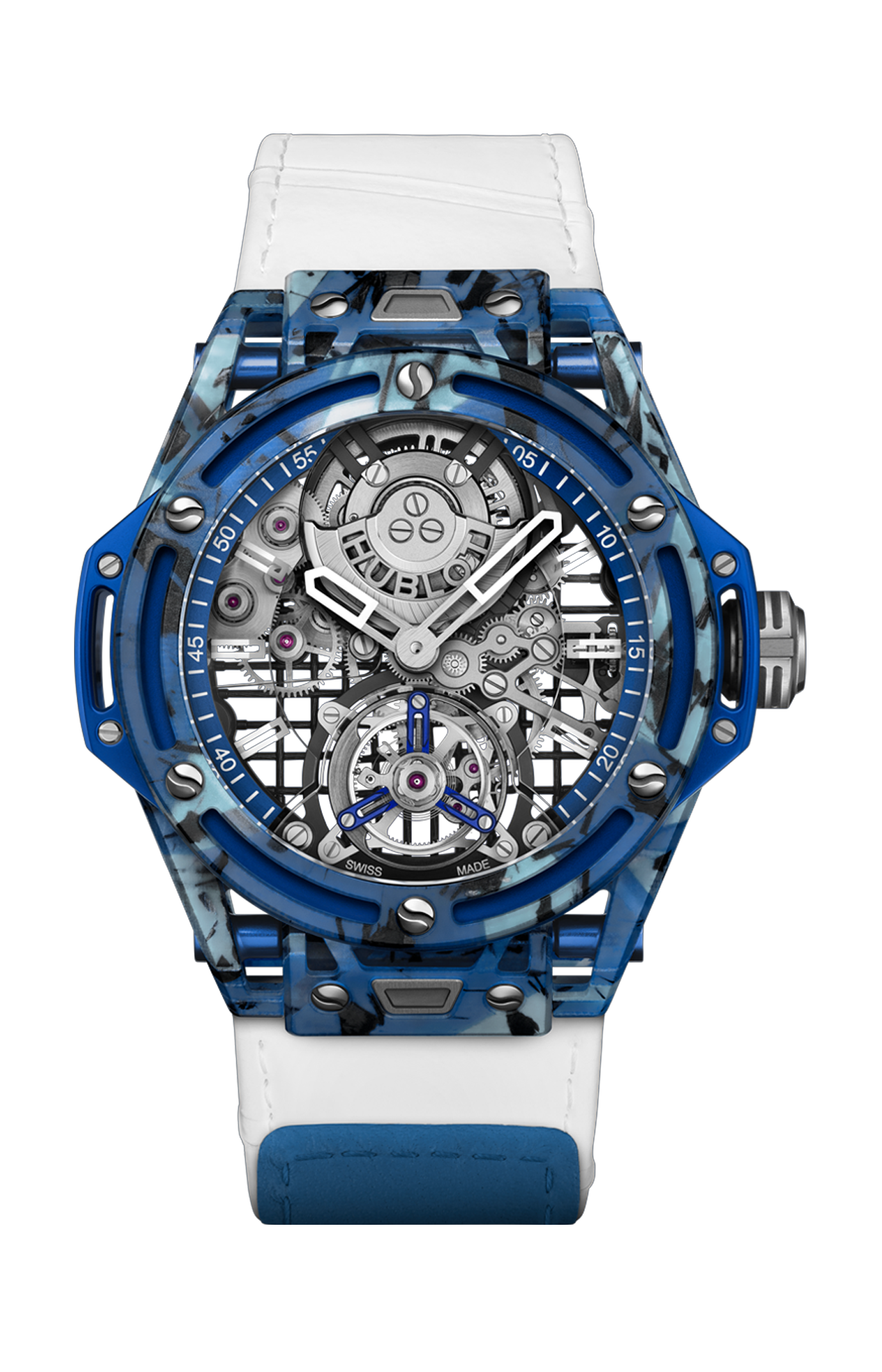 Le sei viti in titanio che fissano la lunetta composita hanno la forma di palline da tennis. Potrebbe sembrare una semplice modifica estetica, ma oltre a creare un programma su misura per la lavorazione di queste viti uniche, gli ingegneri Hublot hanno dovuto progettare uno speciale cacciavite a forma di S in grado di serrare le viti, un processo che ricorda quello sviluppato in precedenza per le famose viti a forma di H del Big Bang.