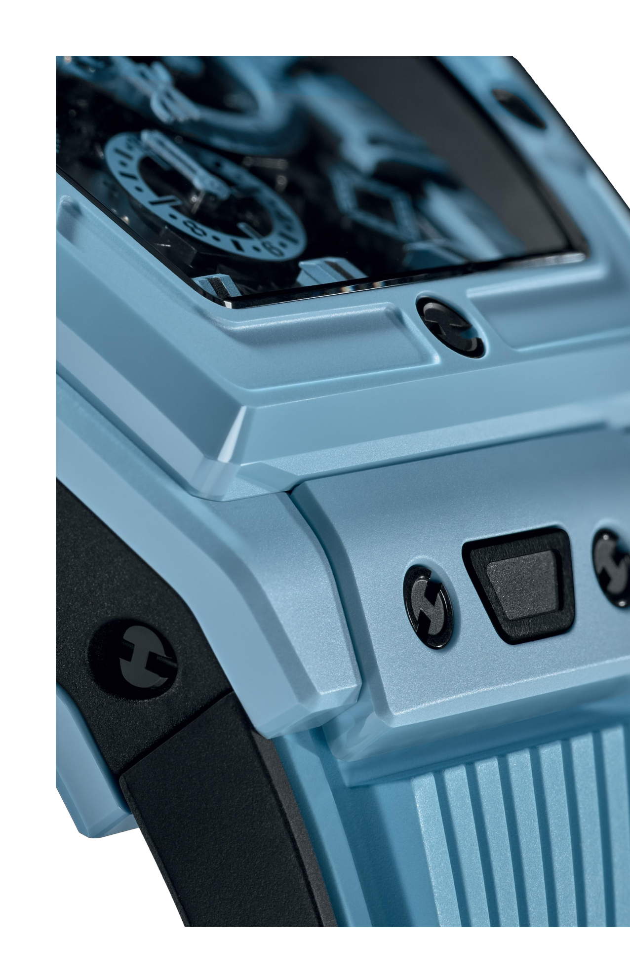 Per Hublot, i materiali sono parte integrante del design dei suoi orologi. Devono completare il loro design, proteggendo al tempo stesso il loro meccanismo e resistendo alla prova del tempo. Pertanto, la manifattura ha scelto di utilizzare la ceramica high-tech per alcune lunette e casse; è un materiale ultra resistente e quasi interamente antigraffio (a parte il diamante) a base di zirconio sinterizzato ad altissime temperature. Edizione limitata di 200 pezzi.