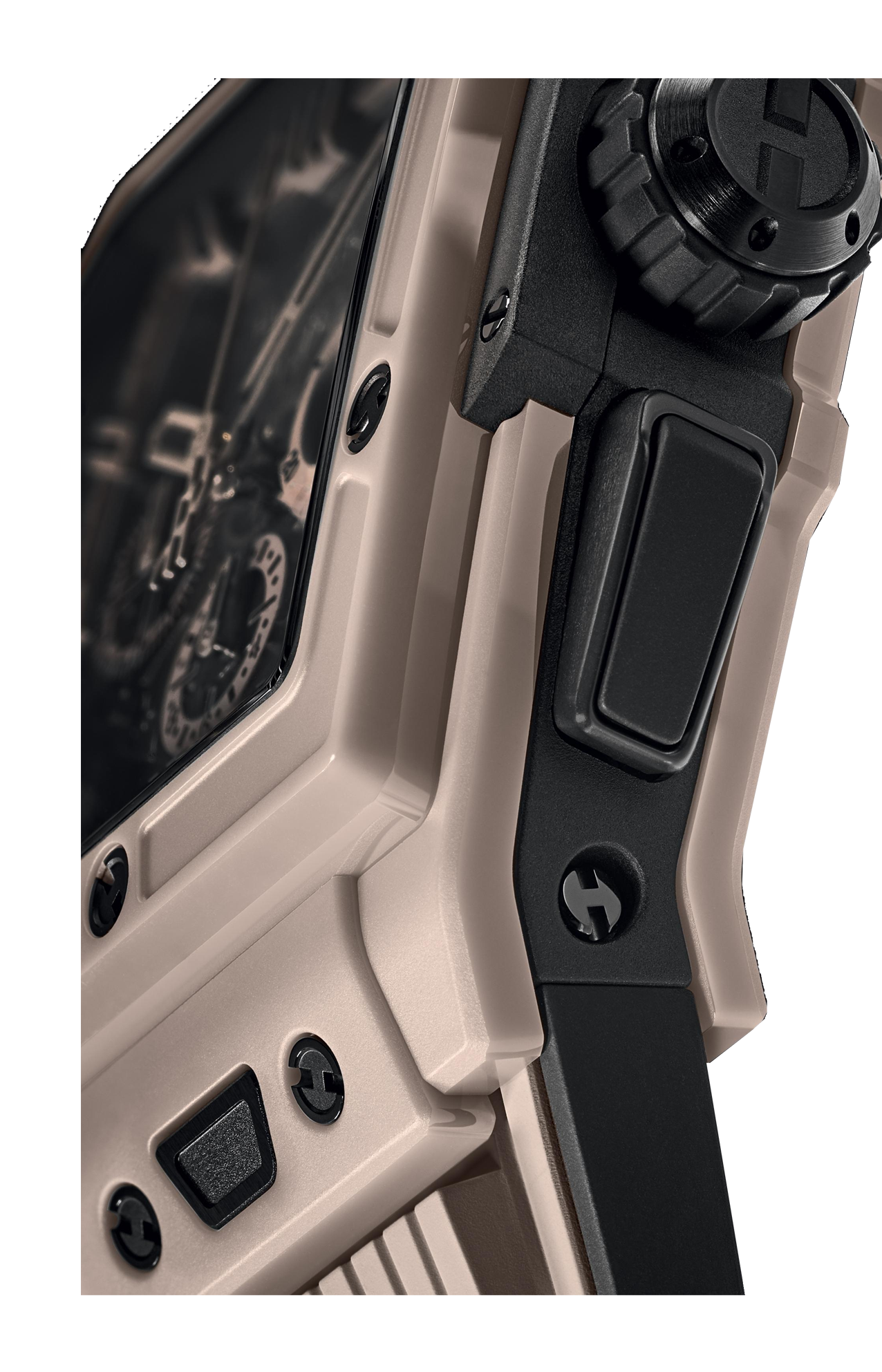 Per Hublot, i materiali sono parte integrante del design dei suoi orologi. Devono completare il loro design, proteggendo al tempo stesso il loro meccanismo e resistendo alla prova del tempo. Pertanto, la manifattura ha scelto di utilizzare la ceramica high-tech per alcune lunette e casse; è un materiale ultra resistente e quasi interamente antigraffio (a parte il diamante) a base di zirconio sinterizzato ad altissime temperature. Edizione limitata di 200 pezzi.
