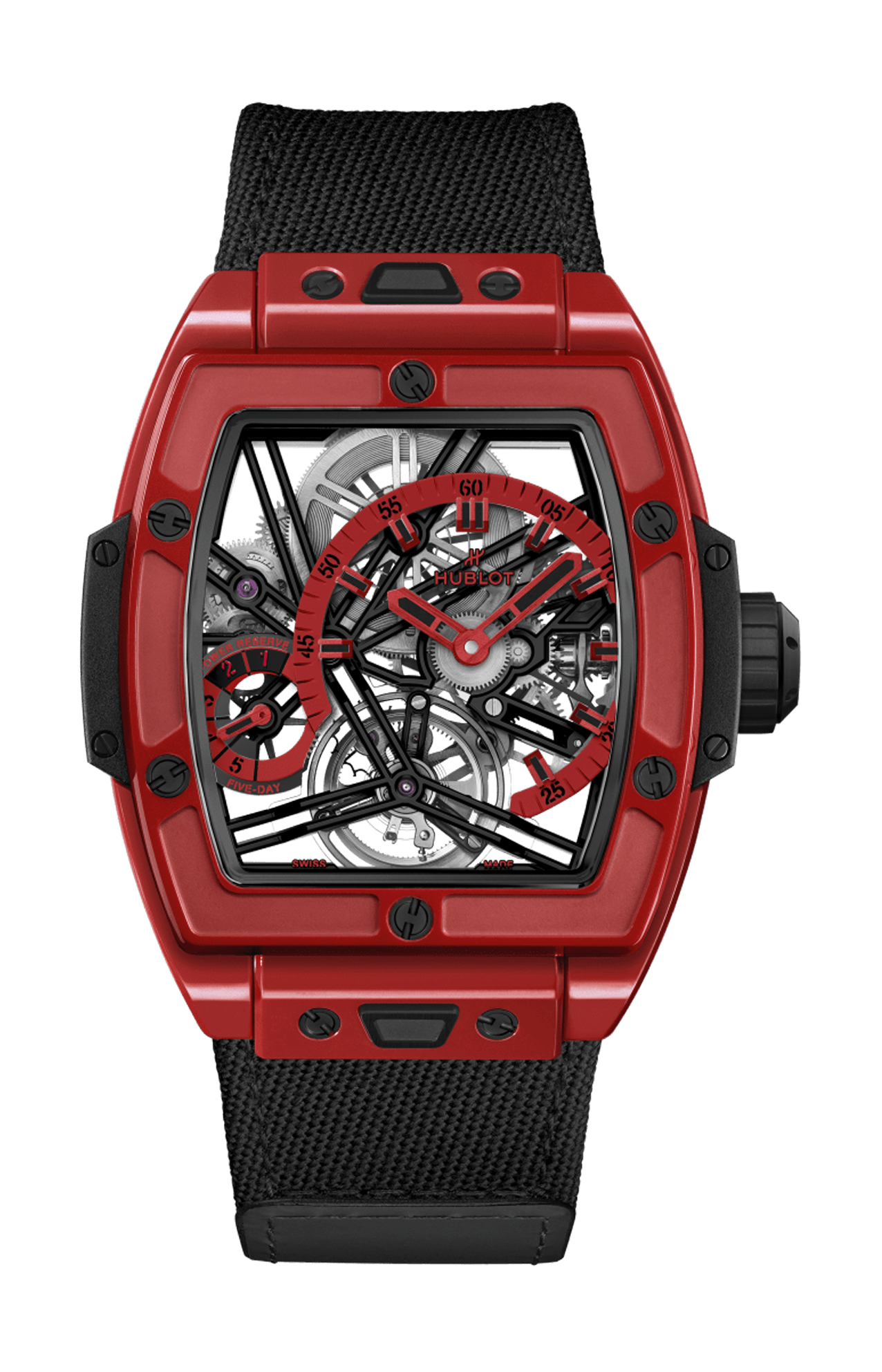 L'arte della fusione si esprime fino al cuore del movimento. Orologi semplici con concetti orologieri innovativi: Hublot ha creato una gamma di movimenti "in-house" unici. Un design unico per il cronografo automatico unico. Una riserva di carica senza pari per i calibri Meca-10, Tourbillon e MP-11. Un motore rivoluzionario con 11 bariletti MP-05 e una riserva di carica di 50 giorni. Nella sua "arte della fusione", Hublot realizza una perfetta simbiosi tra funzionalità, architettura e design. Secondo cinturino incluso caucciù nero e rosso. Edizione limitata a 20 esemplari.