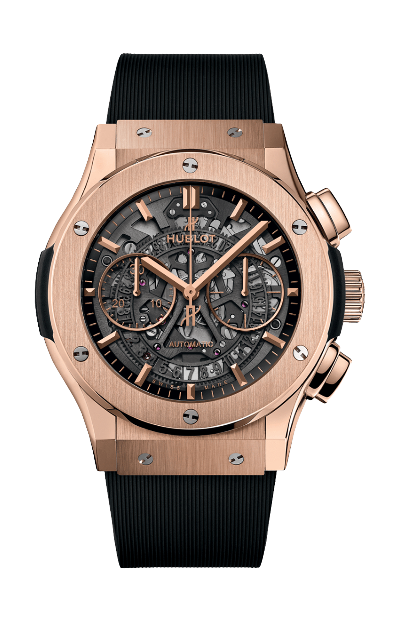 Maestro della fusione e alchimista dei metalli preziosi, Hublot ha sviluppato un nuovo colore oro dalla tonalità più calda rispetto al tradizionale oro 5N 18 carati. Composta principalmente da platino, questa esclusiva lega King Gold si presta perfettamente a qualsiasi tipo di finitura lucida e satinata. Gli orologi Hublot fondono i materiali più inaspettati come ceramica high-tech, gomma e carbonio.