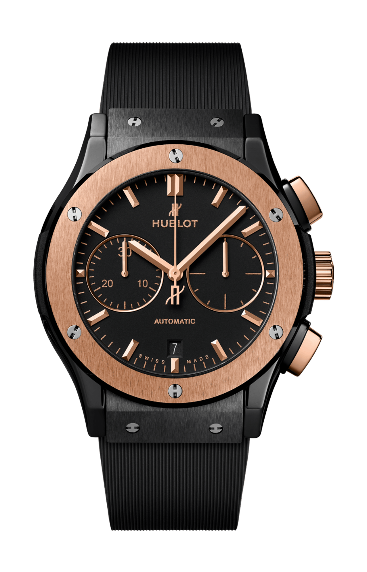 Per Hublot, i materiali sono parte integrante del design dei propri orologi. Devono completarne il design, proteggendone al contempo il meccanismo e resistendo alla prova del tempo. Per questo motivo, la manifattura ha scelto di utilizzare la ceramica high-tech per alcune lunette e casse; si tratta di un materiale ultraresistente e quasi completamente antigraffio (a parte il diamante), con una base di zirconio sinterizzato ad altissime temperature.
