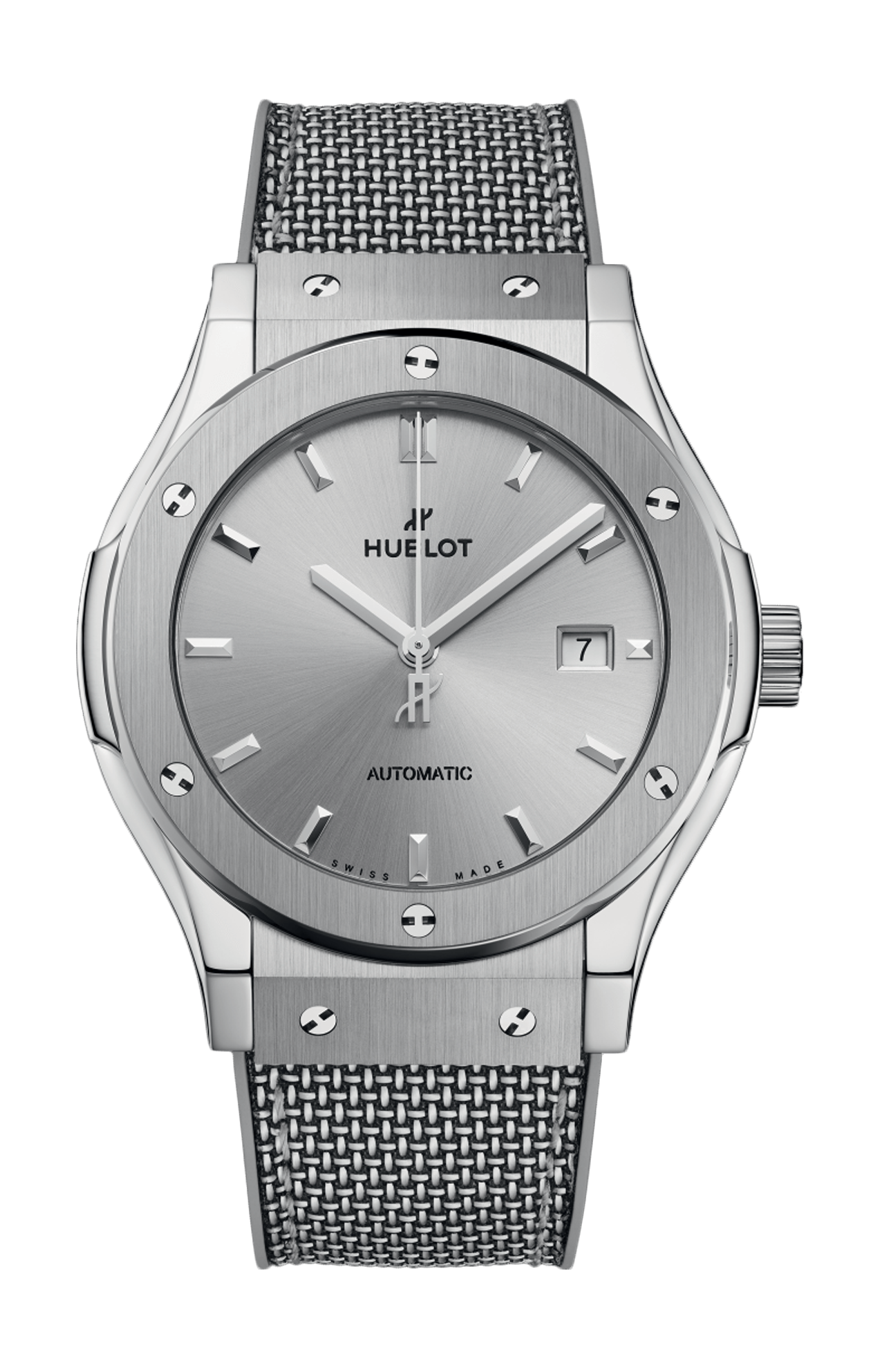 Il titanio è ampiamente utilizzato da Hublot, in particolare per la sua leggerezza. Presenta il miglior rapporto tra resistenza e peso di qualsiasi altro materiale, il che lo rende un materiale estremamente popolare soprattutto in ambito aeronautico. Si distingue anche per la sua resistenza alla corrosione e la sua inerzia a contatto con la pelle. Hublot utilizza esclusivamente titanio di alta qualità, grado 5, il più resistente in assoluto. Una volta lucidato, questo materiale mantiene una leggera lucentezza metallica bluastra.