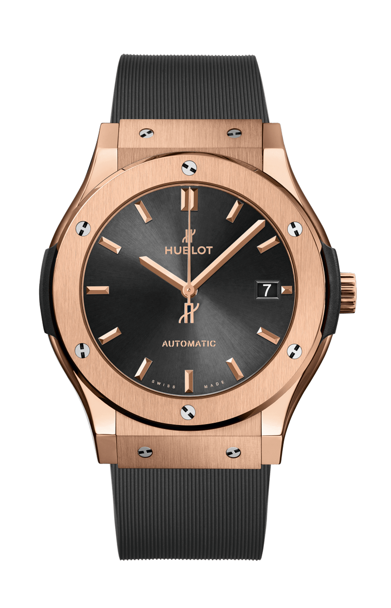 Maestro della fusione e alchimista dei metalli preziosi, Hublot ha sviluppato un nuovo colore dell'oro con una tonalità più calda rispetto al tradizionale oro 5N 18 carati. Composta principalmente da platino, questa esclusiva lega King Gold si presta perfettamente a tutti gli elementi di lucidatura e satinatura. Gli orologi Hublot fondono i materiali più inaspettati come ceramica high-tech, caucciù e carbonio.