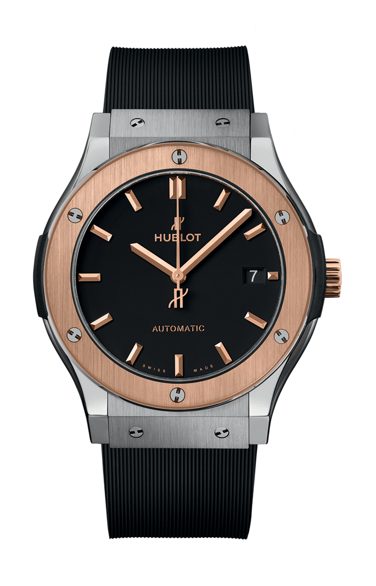 Il titanio è ampiamente utilizzato da Hublot, in particolare per la sua leggerezza. Presenta il miglior rapporto tra resistenza e peso di qualsiasi altro materiale, il che lo rende un materiale estremamente popolare soprattutto in ambito aeronautico. Si distingue anche per la sua resistenza alla corrosione e la sua inerzia a contatto con la pelle. Hublot utilizza esclusivamente titanio di alta qualità, grado 5, il più resistente in assoluto. Una volta lucidato, questo materiale mantiene una leggera lucentezza metallica bluastra.