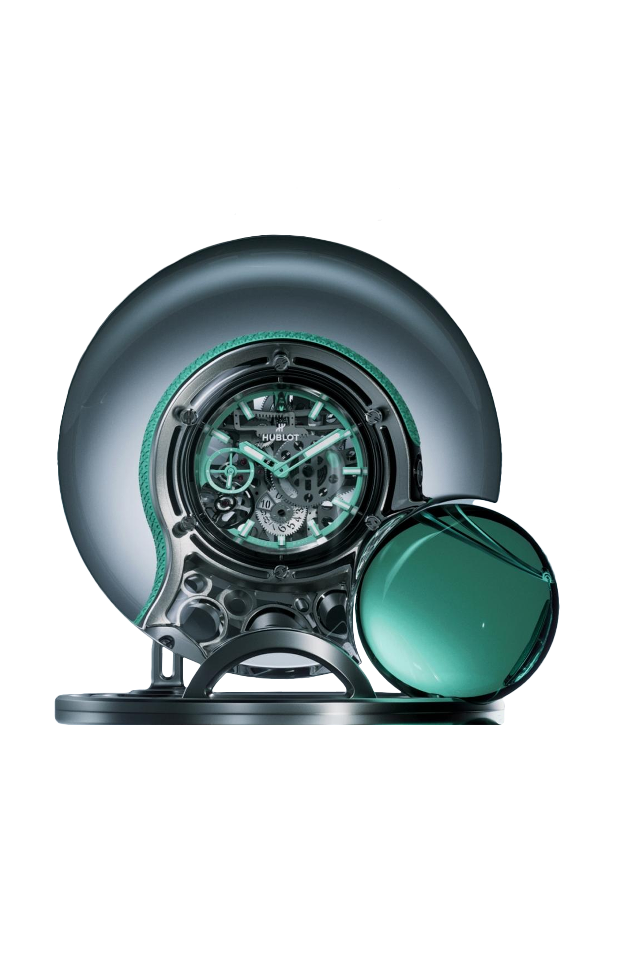 Con il droplet, il classico orologio da tasca è stato completamente reinventato. Ispirato alla fluidità dell'acqua, il design incarna un'eleganza rotonda e una trasparenza cristallina. L'audace costruzione del droplet presenta una cassa in titanio, vetro zaffiro e paraurti in gomma, abbinati a una caratteristica forma a goccia arrotondata e a una complessità senza pari. Due catene in titanio consentono una vestibilità flessibile, mentre una riserva di carica di 10 giorni garantisce la massima libertà di movimento. Tutto ciò si combina per creare un segnatempo rivoluzionario, così diverso, così unico, che può essere solo Hublot.