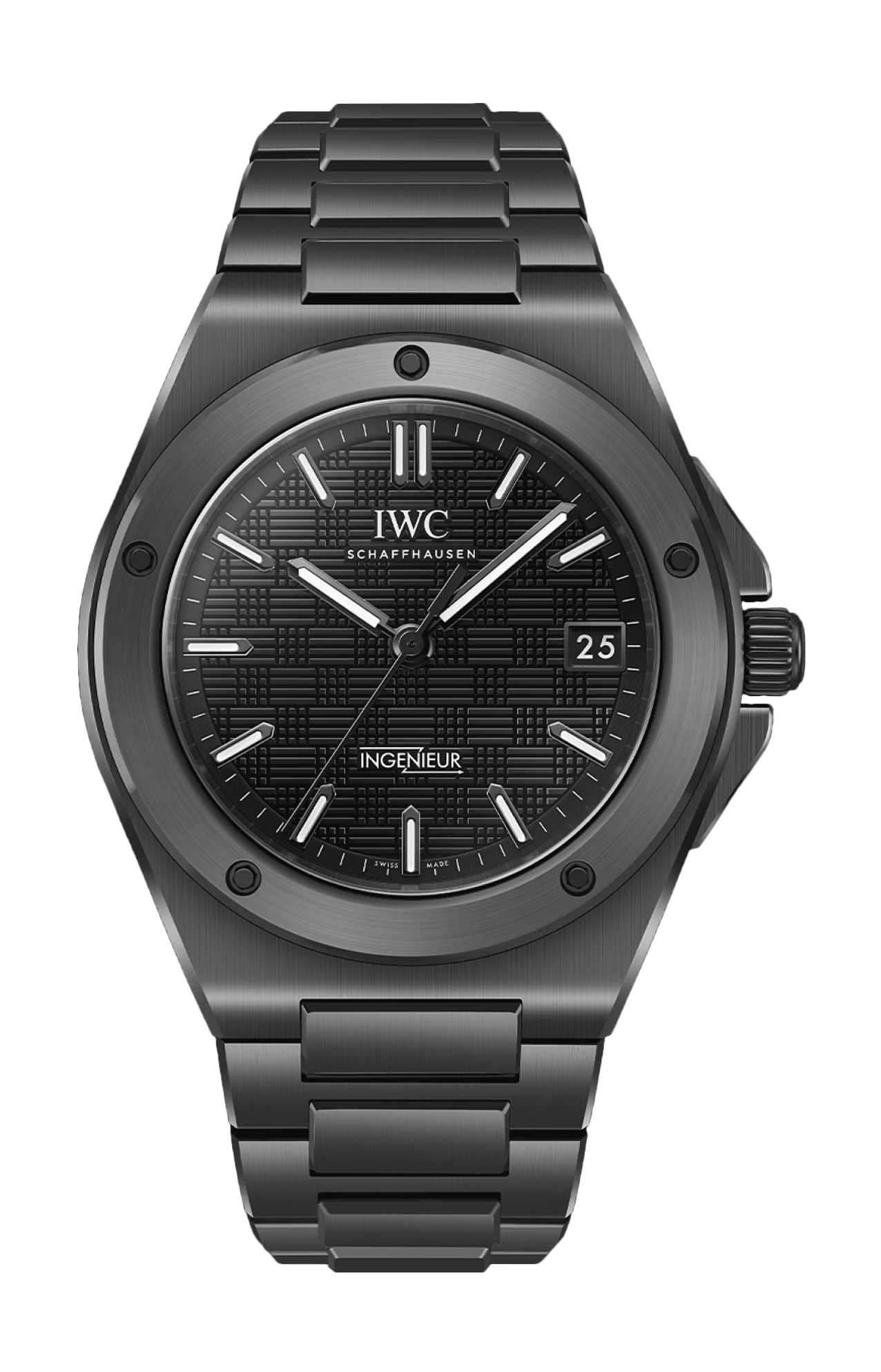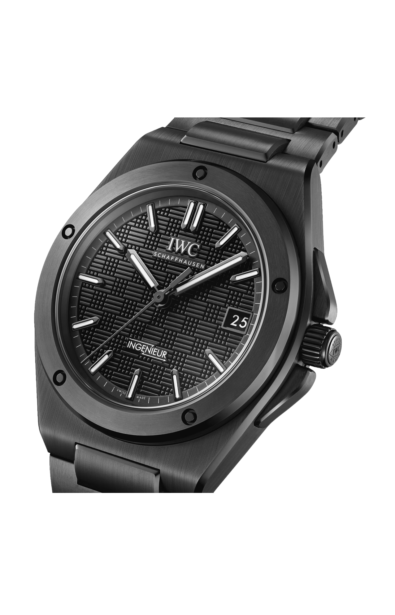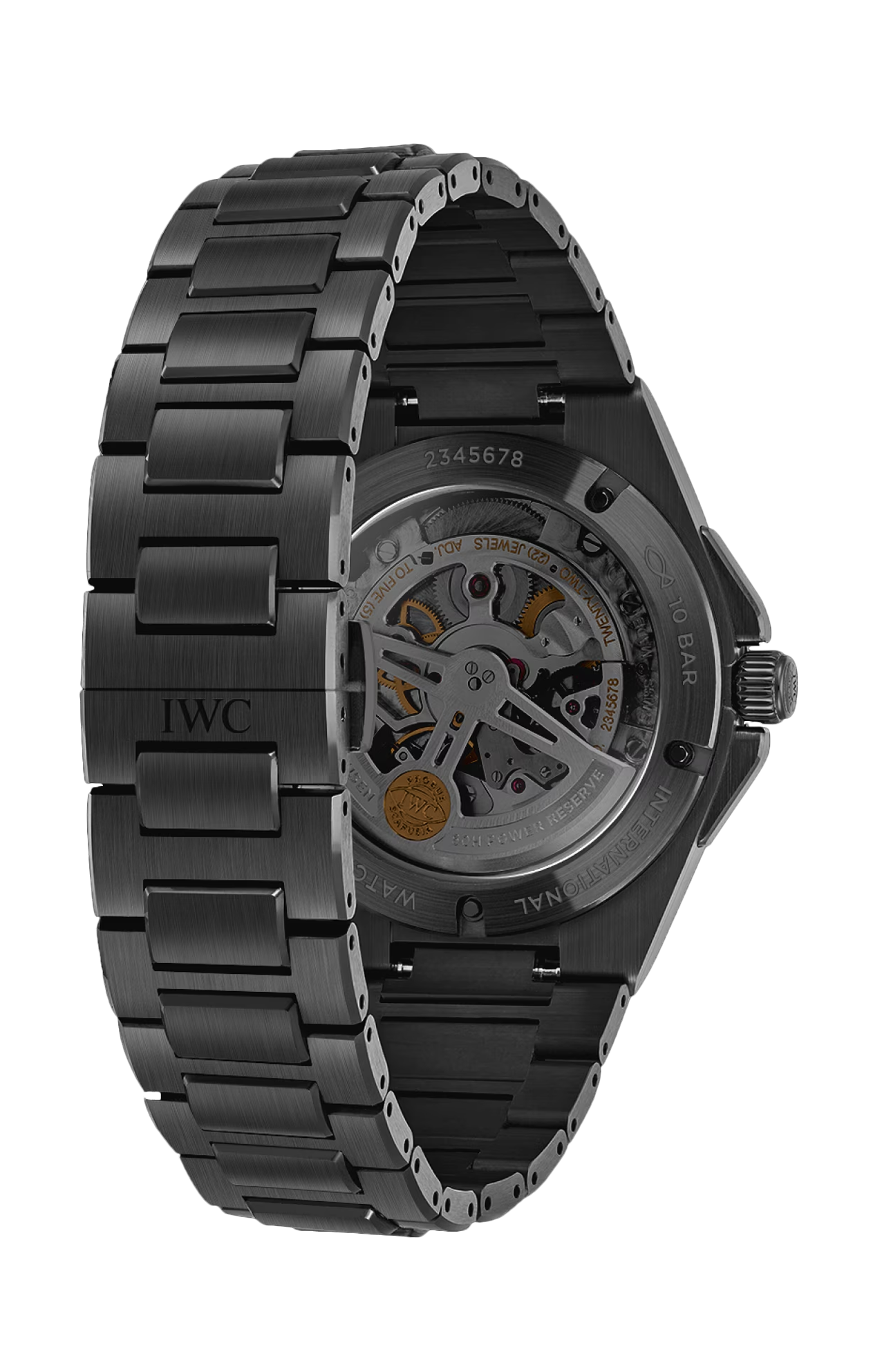Per ottenere una traduzione in ceramica fedele alle proporzioni del design Ingenieur e la più sottile possibile, IWC ha optato per un’innovativa struttura della cassa in pura ceramica multipart. La ghiera, la lunetta e il fondello sono tutti realizzati in ceramica a base di ossido di zirconio nero. Anche le parti aggiuntive, come la corona e la protezione della corona, sono realizzate con questo materiale estremamente duro e resistente ai graffi. Un sottile anello interno in titanio accoglie le viti funzionali della lunetta e del fondello, sostiene il movimento e garantisce un’elevata impermeabilità fino a 10 bar. Questo approccio innovativo consente una traduzione in ceramica che rimane perfettamente fedele al design originale dell’Ingenieur in acciaio. Collegato alla cassa tramite le maglie centrali, il bracciale integrato offre un’ergonomia perfetta. Poiché la ceramica è un materiale particolarmente leggero, è molto comoda da indossare. Il quadrante nero presenta l’emblematico motivo “a griglia”, costituito da piccole linee e quadrati. Per garantire una perfetta leggibilità in tutte le condizioni di luce, le lancette nere e gli indici in metallo sono riempiti con Super-Luminova®. Per l’Ingenieur Automatic 42, IWC ha ampliato i confini della finitura ceramica con una combinazione di satinatura, sabbiatura e lucidatura. Poiché la ceramica è tra i materiali più duri del pianeta, questa finitura richiede un processo lungo e complesso, che può essere eseguito solo con strumenti con punta di diamante. L’orologio è animato dal calibro di manifattura IWC 82110. Il suo sistema di carica Pellaton converte efficacemente i movimenti della massa oscillante in entrambe le direzioni in energia per la molla principale, accumulando una riserva di carica di 60 ore. I componenti soggetti a forti sollecitazioni sono realizzati in ceramica a base di ossido di zirconio, praticamente esente da usura. Il movimento può essere osservato attraverso il fondello in vetro zaffiro colorato.