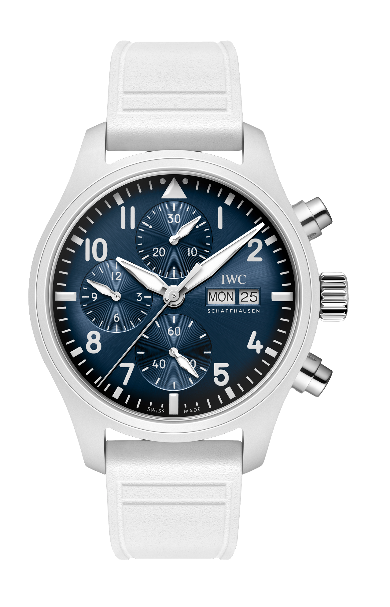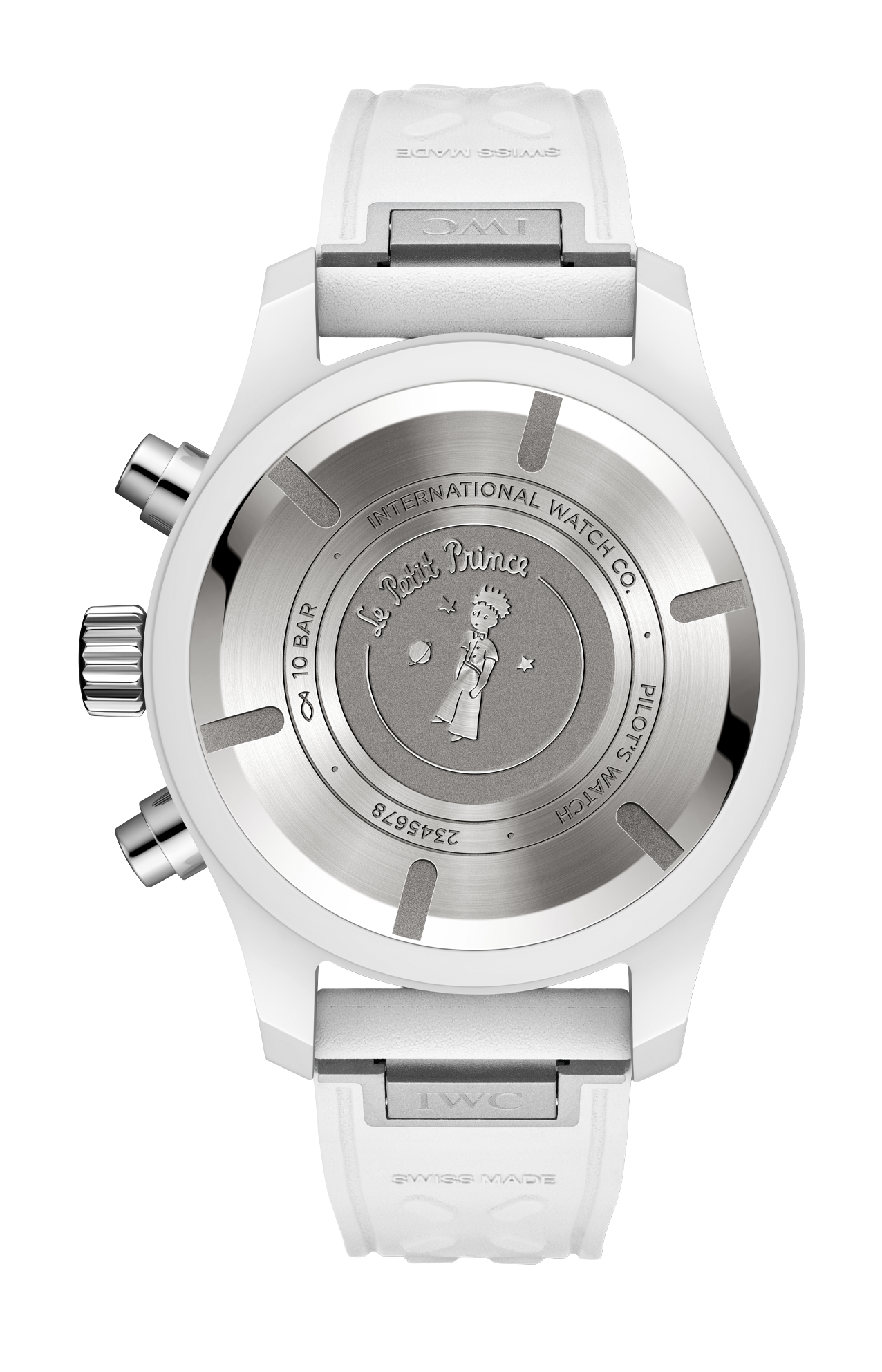 Con il Pilot’s Watch Chronograph 41 Le Petit Prince, IWC Schaffhausen prosegue la sua tradizione di orologi da pilota dedicati al racconto di Saint-Exupéry, noto in tutto il mondo. La cassa da 41 millimetri è realizzata in ceramica bianca a base di ossido di zirconio, un materiale leggero, resistente ai graffi e caratterizzato da una superficie liscia e setosa. La cassa crea un netto contrasto con il quadrante blu intenso con finitura soleil, tipico di queste edizioni speciali. Con un delicato effetto sfumato, numeri e indici bianchi nitidi e lancette rodiate riempite di Super-LumiNova®, il cronografo combina un’eleganza raffinata con un’eccezionale leggibilità. Il fondello in titanio è inciso con una dettagliata raffigurazione del Piccolo Principe, che dà vita all’ispirazione poetica dell’orologio. Ad animare il Pilot’s Watch Chronograph 41 Le Petit Prince è il calibro 69381 di manifattura IWC. Questo movimento cronografico meccanico, progettato con un classico design con ruota a colonne, consente la misurazione precisa dei tempi di arresto fino a 12 ore. Ore e minuti sono visualizzati secondo il tipico layout dei quadranti IWC, con due totalizzatori allineati verticalmente a ore 9 e 12. Il sistema di carica a cricchetti bidirezionale accumula in modo efficiente una riserva di carica di 46 ore. L’orologio è dotato del pratico sistema EasX-CHANGE®, che consente di sostituire il cinturino in caucciù bianco con la semplice pressione di un pulsante.