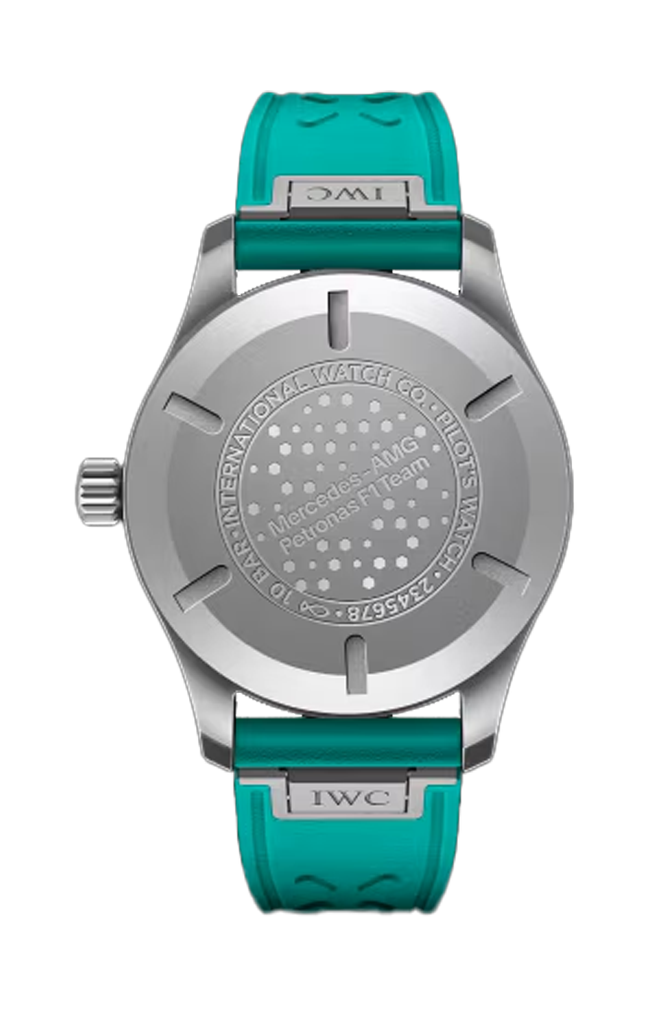 Nel 2013, IWC Schaffhausen è diventata “Official Engineering Partner” del Mercedes-AMG Petronas Formula One™ Team. Il Pilot’s Watch Mark XX Mercedes-AMG Petronas Formula One™ Team è il secondo orologio ufficiale del team creato da IWC per il suo storico partner nel mondo degli sport motoristici. La cassa da 40 millimetri è realizzata in titanio grado 5, leggero e straordinariamente rigido. Offrendo il più alto rapporto resistenza/densità tra tutti i metalli, il titanio è largamente utilizzato anche nel campo dell’ingegneria automobilistica per produrre parti di automobili sottoposte a stress immensi, come le valvole del motore. Dopo la lavorazione e la sabbiatura, la superficie acquista un’accattivante luminosità grigiastra. I numeri e gli indici nel caratteristico verde della squadra creano un contrasto con il quadrante nero. Le lancette delle ore, dei minuti e dei secondi sono rivestite con Super-Luminova® dello stesso colore verde. All’interno della cassa è presente il calibro 32111 di manifattura IWC, un movimento automatico con una riserva di carica di 120 ore. Questo orologio è resistente all’acqua fino a 10 bar ed è dotato di un cinturino in caucciù verde Petronas con sistema di cambio cinturino EASX-CHANGE®.