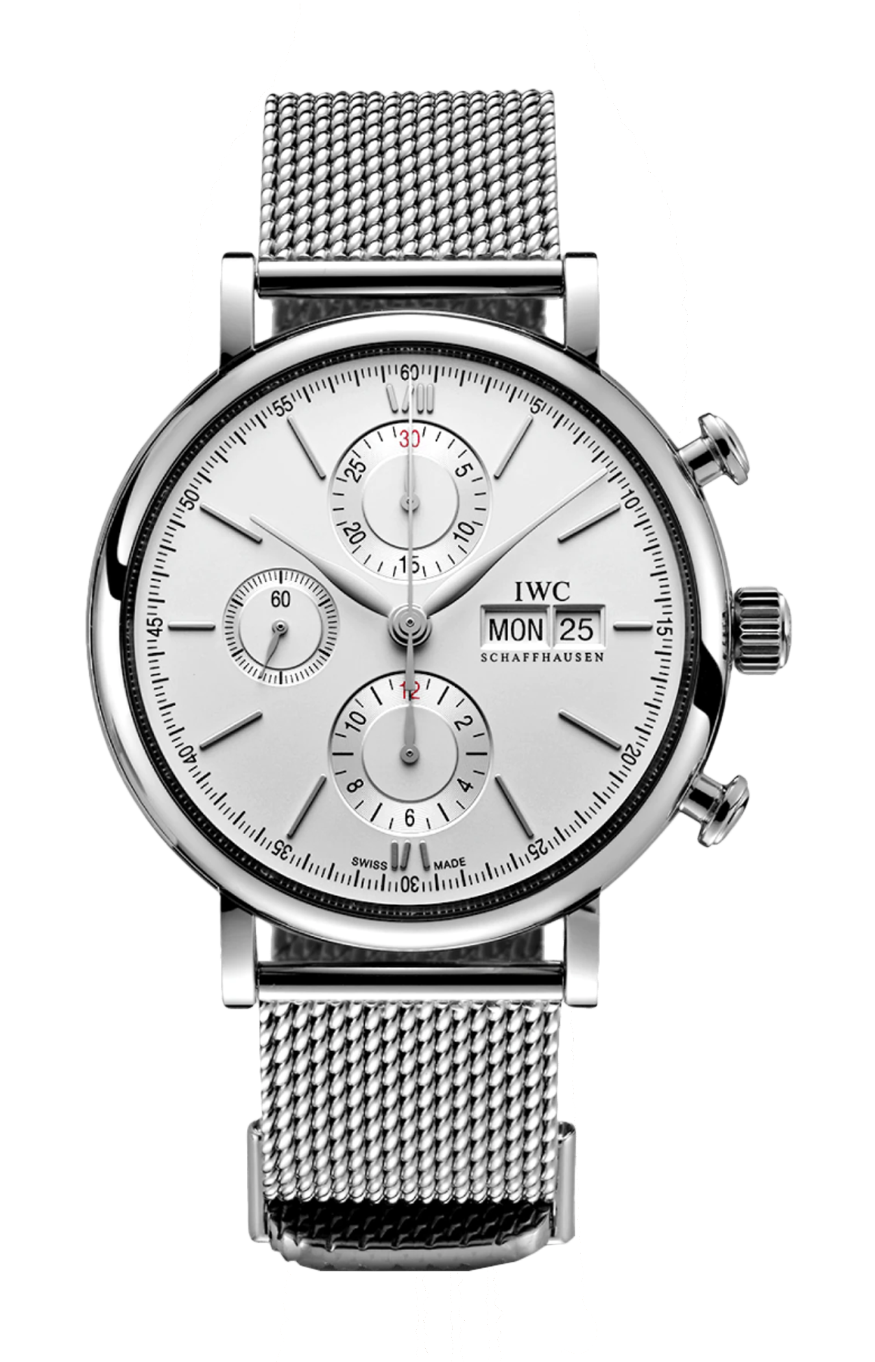 Con il look elegantemente sportivo dei pulsanti e delle indicazioni, il Portofino Chronograph si ispira al tipico design degli anni sessanta. Il cronografo in acciaio è dotato di quadrante argentato, vetro zaffiro bombato, così come di numeri e indici rodiati, e viene azionato dal collaudato calibro 75320 a carica automatica, con un’autonomia di marcia di 44 ore. Il bracciale a maglia milanese, sofisticato e perfettamente adattabile al polso, sottolinea ulteriormente il carattere senza tempo del Portofino Chronograph.