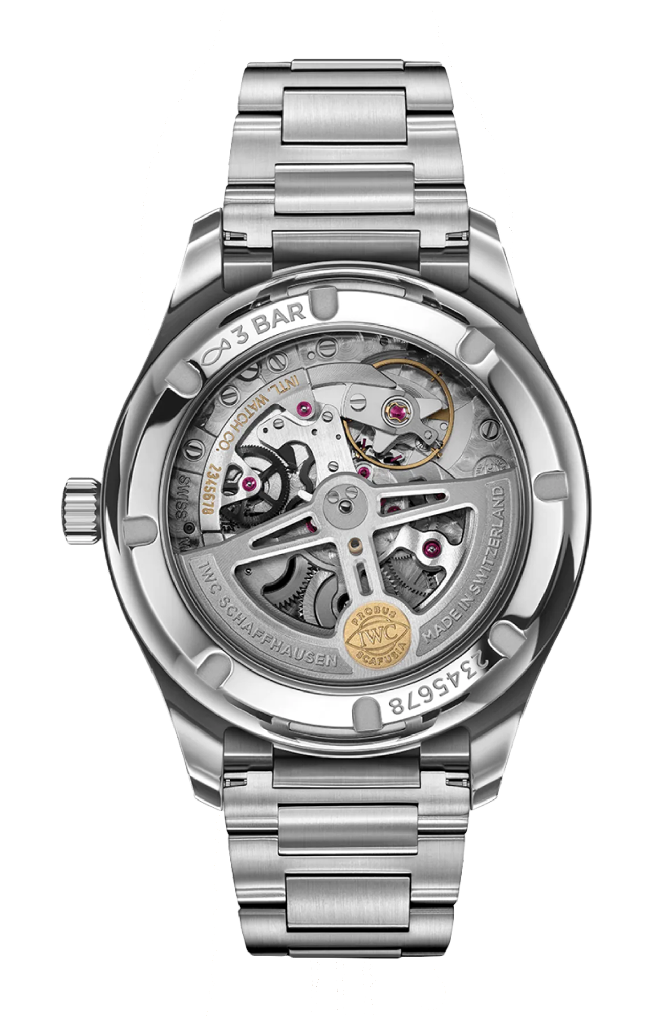 L'acciaio inossidabile è un materiale pratico e robusto perfetto per l'uso quotidiano in quanto resistente a corrosione, umidità, sudorazione e salsedine. Sono queste proprietà a renderlo ideale per la manifattura di casse e bracciali. La nuova versione del Portugieser Automatic 40 è corredata da un bracciale in metallo con 3 file di maglie e rifinito con superfici lucide e satinate che conferiscono al segnatempo un fascino innovativo e contemporaneo rendendolo più versatile e sportivo che mai. Inoltre, grazie alla chiusura con fibbia déployante butterfly integrata, aderisce perfettamente al centro del polso, offrendo una vestibilità altamente ergonomica e confortevole. Il bracciale si sposa magnificamente con la cassa in acciaio e il quadrante argenté con lancette e indici applicati blu, mentre il design chiaro ed essenziale con piccoli secondi a ore 6 si ispira ai codici estetici della prima referenza Portugieser della fine degli anni trenta. Il segnatempo è animato dal calibro 82200 di manifattura IWC, visibile attraverso il fondello in vetro zaffiro. Il sistema di ricarica Pellaton è stato rinforzato con componenti realizzate in ceramica praticamente esente da usura. Sfruttando entrambe le direzioni del rotore per caricare la molla motrice, consente di accumulare una riserva di carica fino a 60 ore.