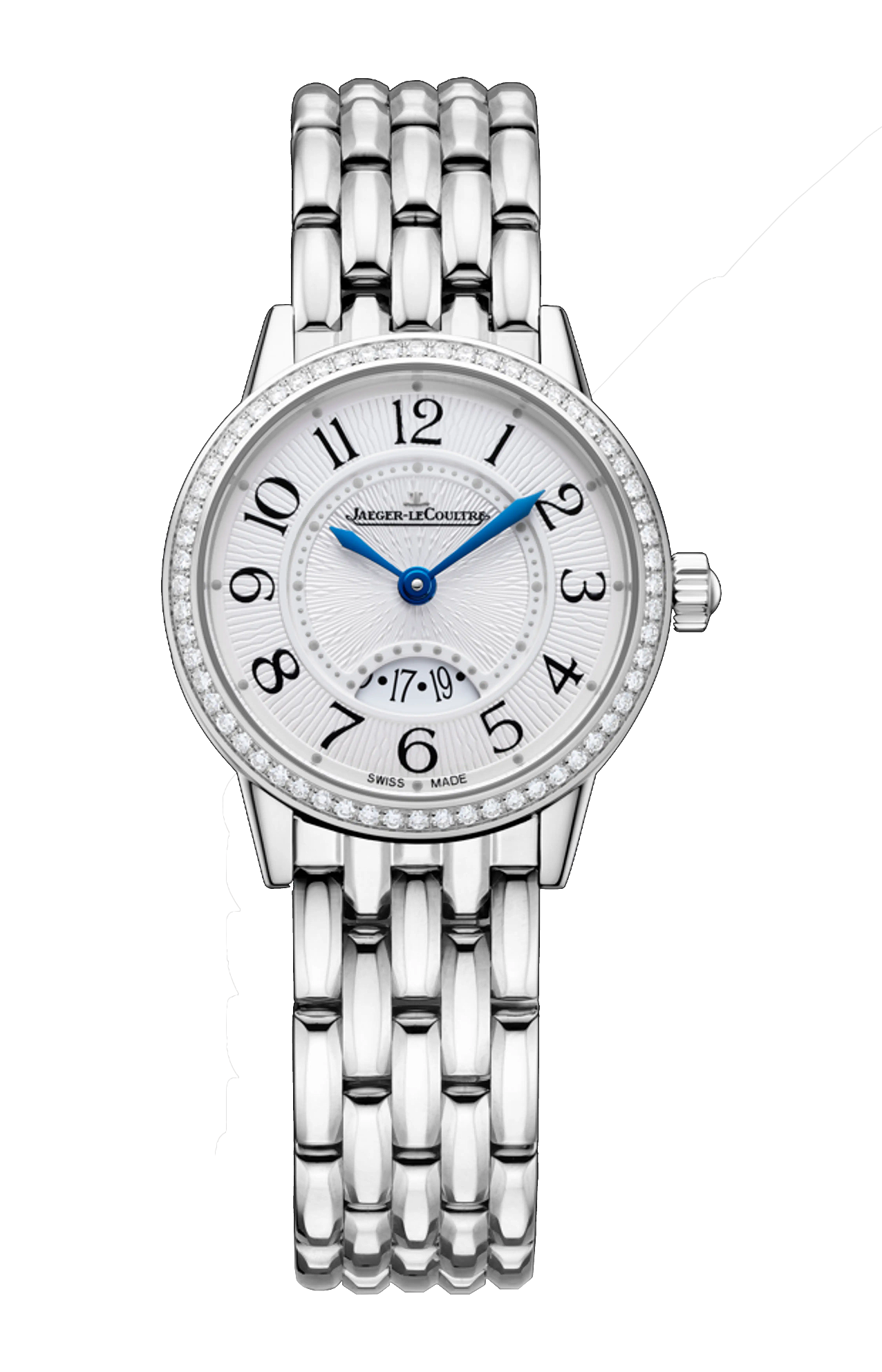 Grazie al suo bracciale in acciaio il rendez-vous date è decisamente contemporaneo. Fedele ai codici estetici della collezione, questo segnatempo al quarzo coniuga le sue funzioni con un design elegante e raffinato. Sul quadrante argentato con finitura guilloché soleil, spiccano le lancette floreali in acciaio azzurrato e la minuteria con i suoi punti decalcatI che sottolineano i numeri delle ore. In un’apertura a ore 6, la complicazione della data appare in caratteri floreali, emblematici della collezione, con i numeri pari discretamente indicati da un piccolo punto. La lunetta tempestata di 60 diamanti (0,42 carati) aggiunge il tocco di raffinatezza a questo orologio delicatamente femminile.