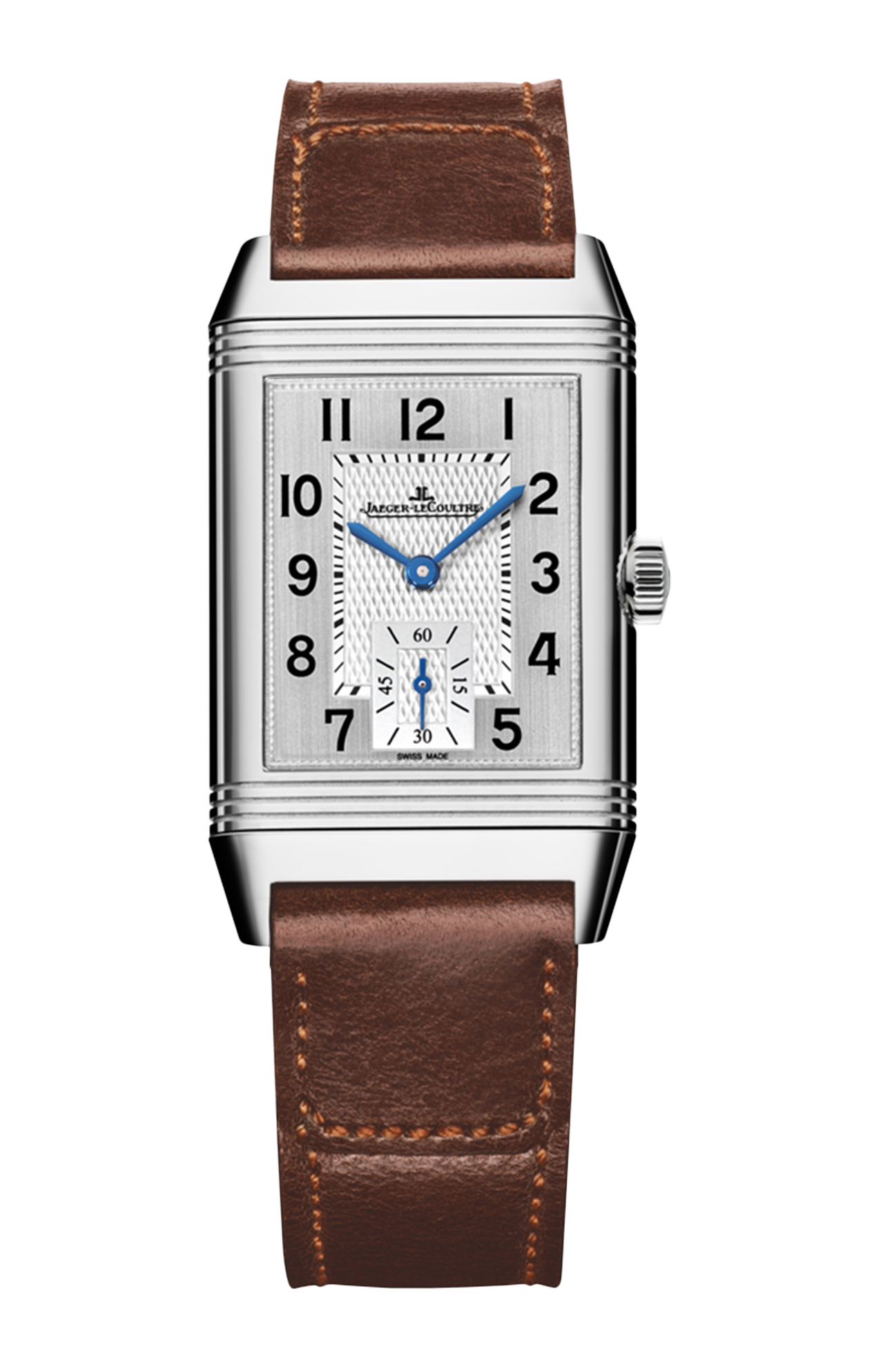 Con i suoi due quadranti animati da un unico movimento meccanico, l’orologio Reverso Classic Medium Duoface Small Seconds offre ai viaggiatori due fusi orari in un’elegante cassa di acciaio. Il cinturino in pelle di vitello della collezione Fagliano ne esalta l’eleganza intramontabile.