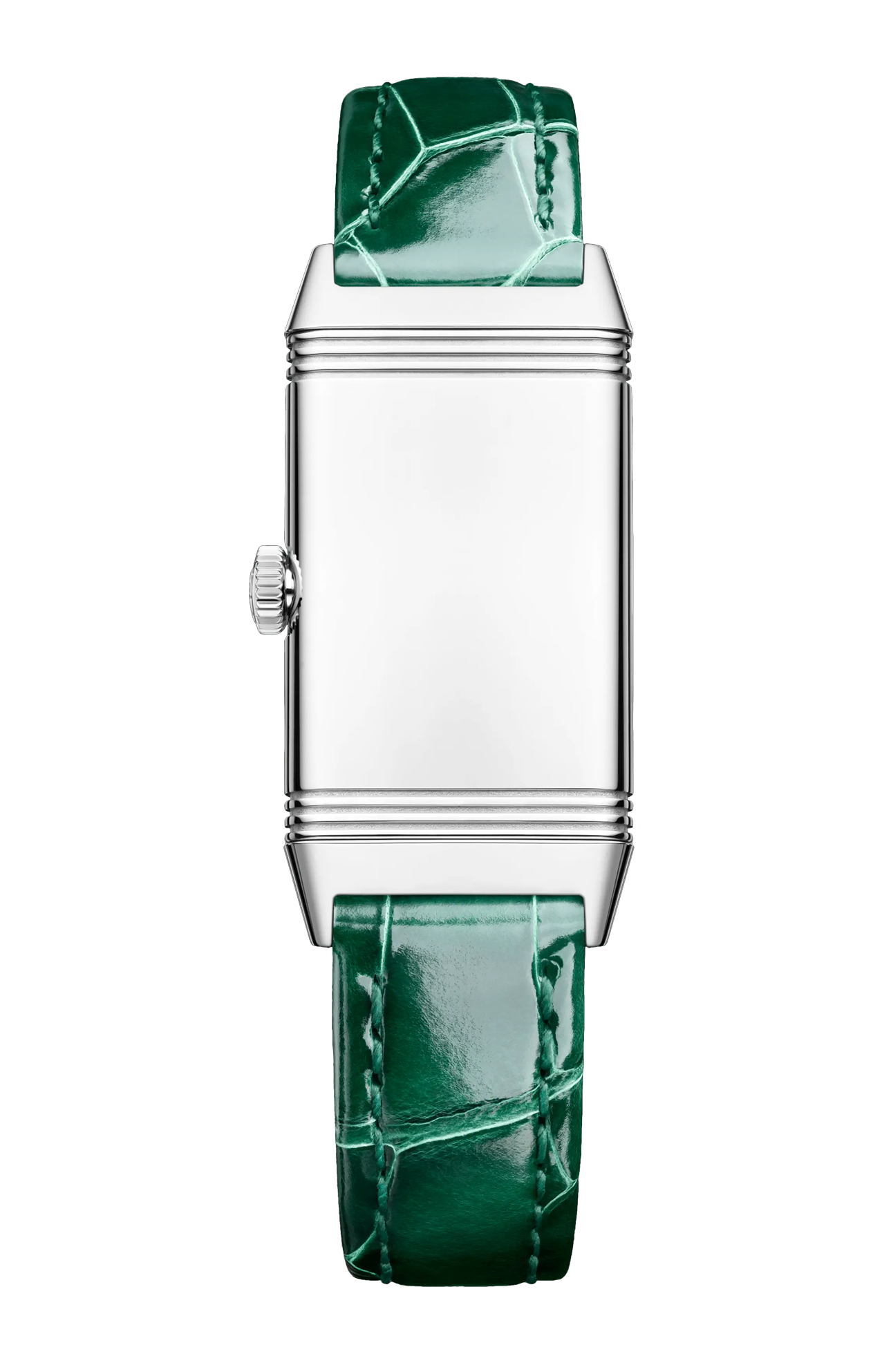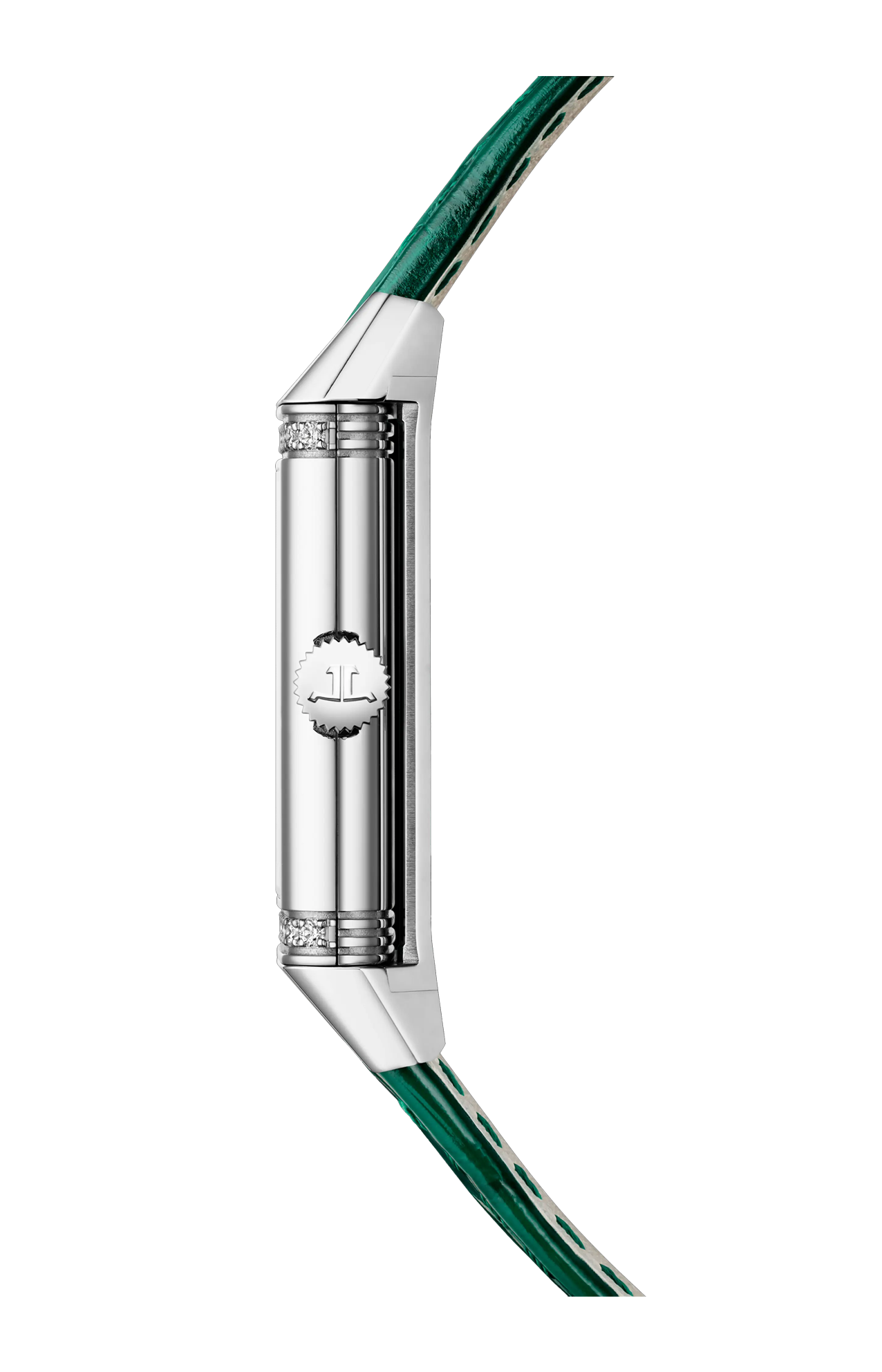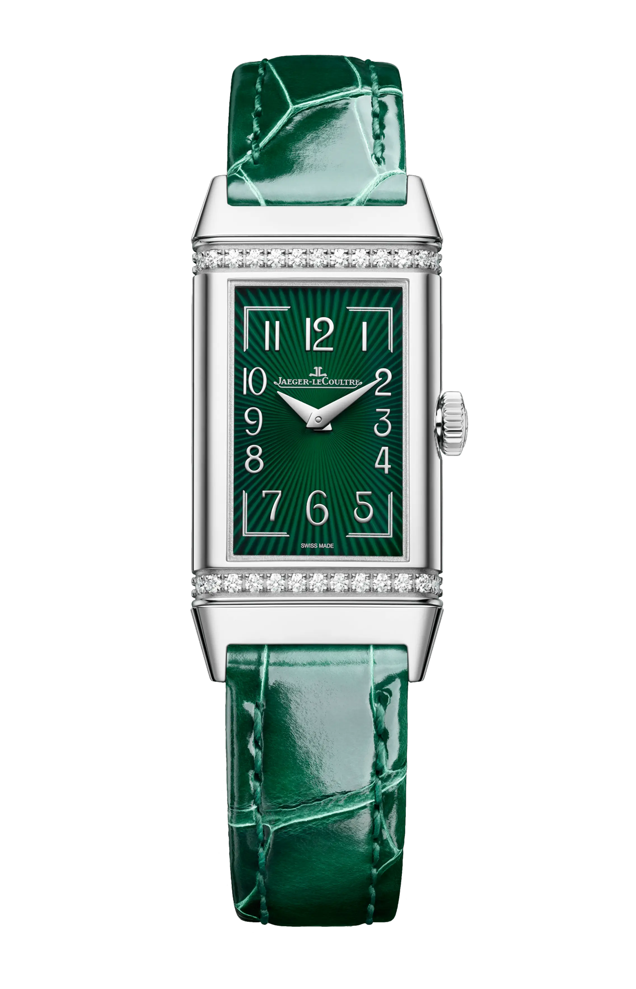 Distinguendosi per la forza e la purezza delle linee derivate dal suo originale design Art DÉCO, il nuovo Reverso One introduce uno straordinario colore verde che aggiunge un innegabile tocco di raffinatezza alla collezione. Ispirata ai primi modelli allungati così popolari negli anni ‘30, questa nuova espressione femminile e accattivante del Reverso One rivela un’eleganza moderna. Con la sua cassa rettangolare, le emblematiche scanalature, gli eleganti numeri arabi, le lancette dauphine e le due file di diamanti taglio brillante che circondano il quadrante laccato, reinterpreta i codici di questa collezione iconica in un inimitabile stile Art DÉCO firmato Jaeger-LeCoultre.