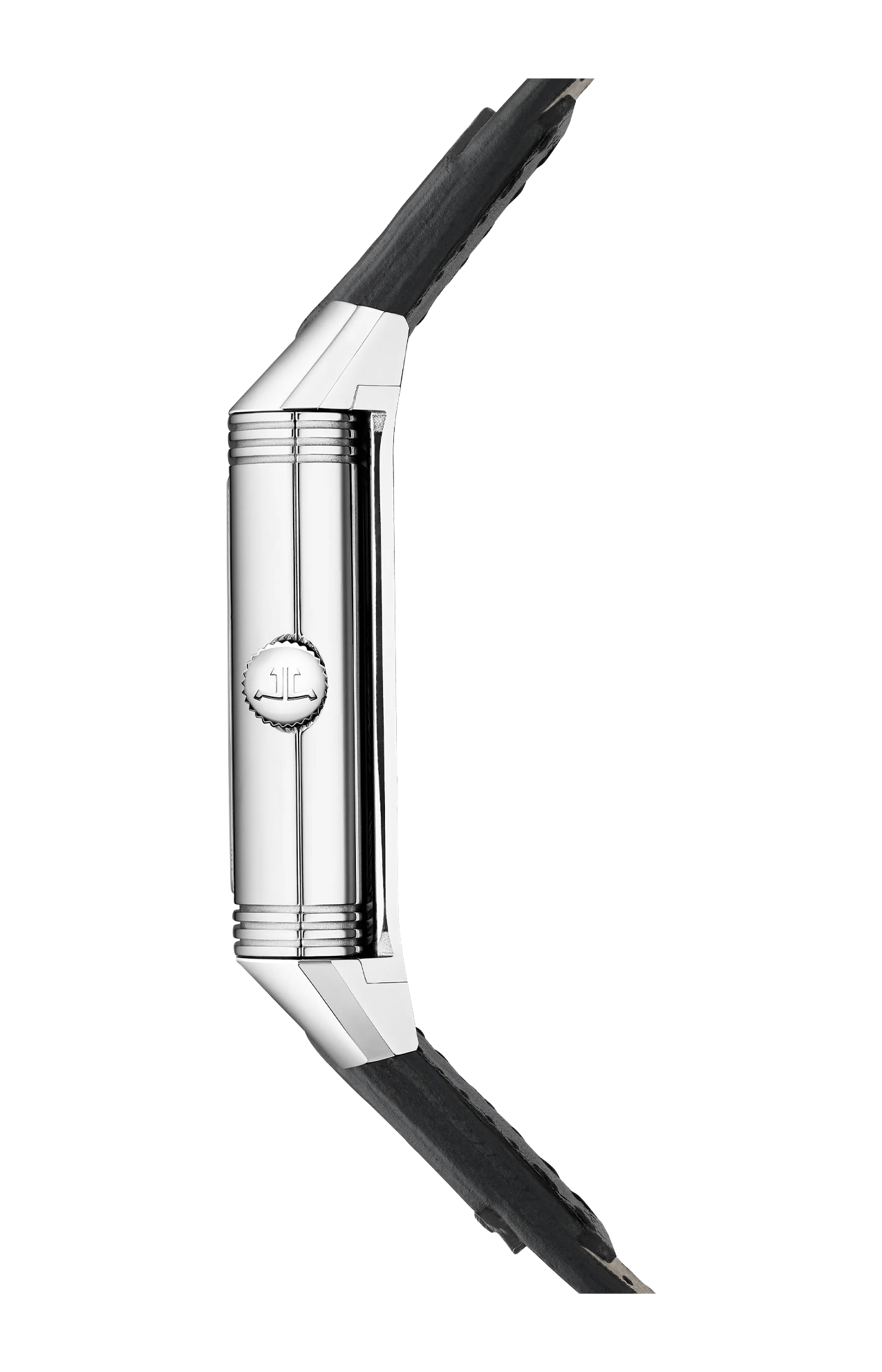 Dotato della complicazione Duoface, l’orologio Reverso Tribute Duoface Small Seconds si ispira ai codici Art Déco dei primissimi modelli del 1931. Sul fronte, il quadrante bianco opalino mostra chiaramente le sue caratteristiche e funzioni: la minuteria “chemin de fer”, gli indici trapezoidali applicati, le lancette Dauphine e i piccoli secondi a ore 6. Sul retro, il quadrante blu con finitura soleil lascia spazio a un indicatore giorno/notte centrato a ore 6. Il secondo fuso orario si regola facilmente tramite un pulsante posto sul lato della cassa in acciaio. L’orologio è dotato di due bracciali disegnati da Casa Fagliano: il primo in pelle nera; il secondo, dello stesso colore, in pelle e tela.