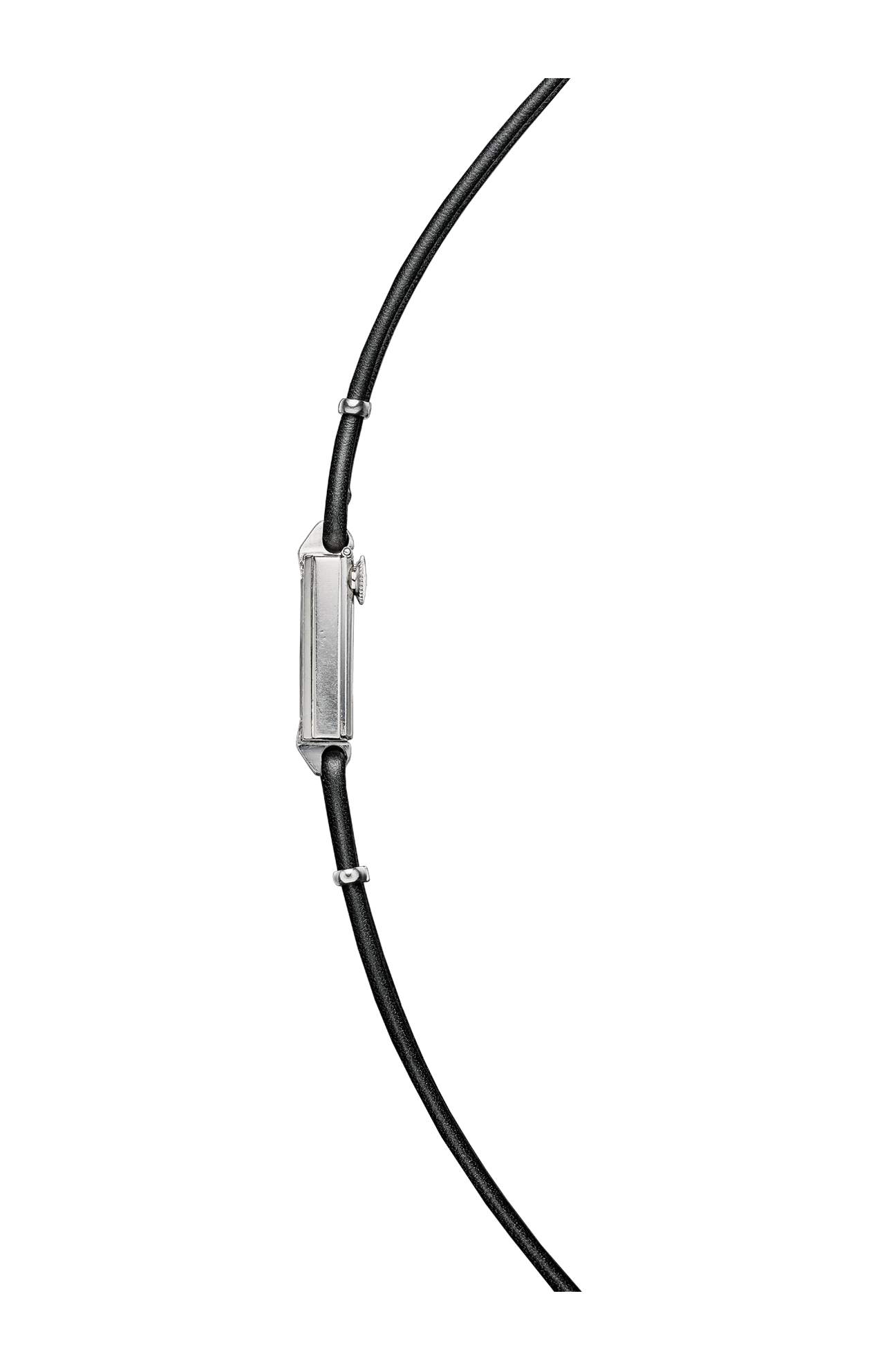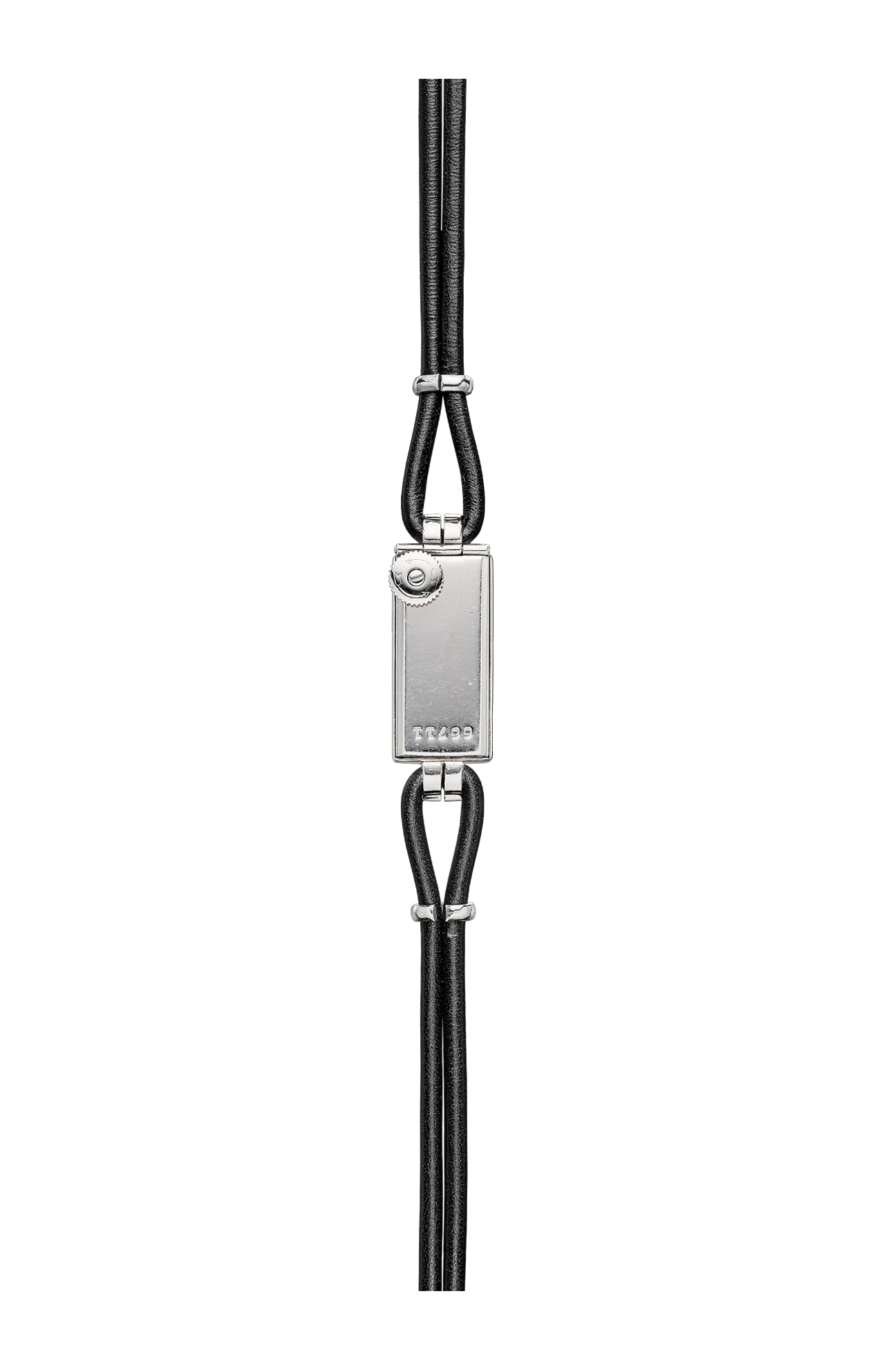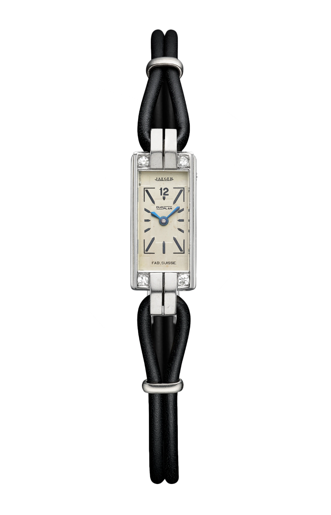La cassa geometrica di questo orologio si distingue per i quattro diamanti posti agli angoli e per le anse tese, quasi a forma di artigli.