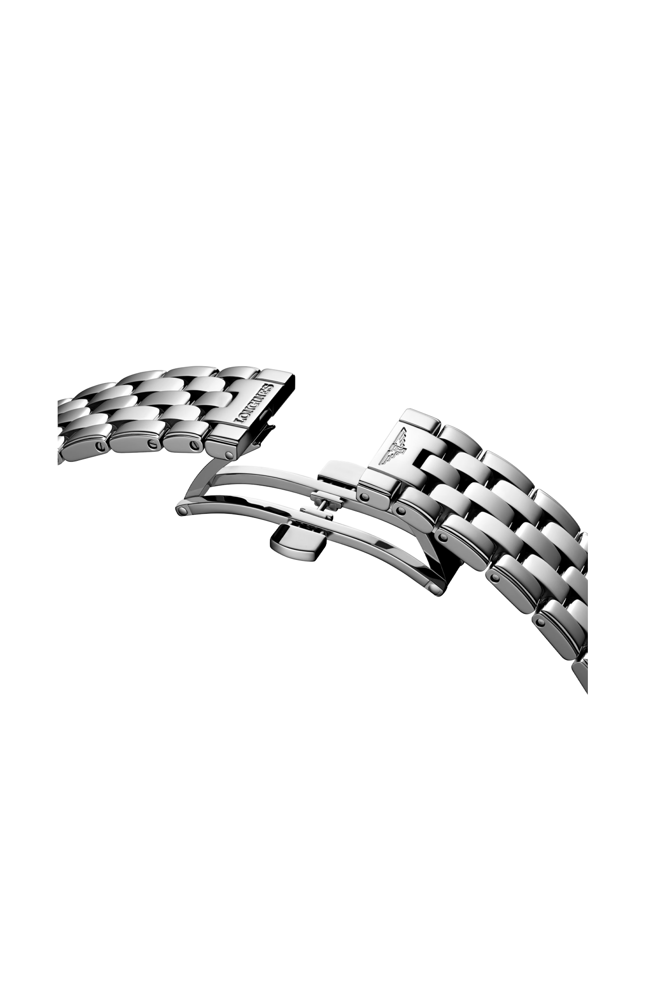 BRACCIALE IN ACCIAIO INOSSIDABILE, CON CHIUSURA DÉPLOYANTE A TRIPLA SICUREZZA E MECCANISMO DI APERTURA A PRESSIONE.