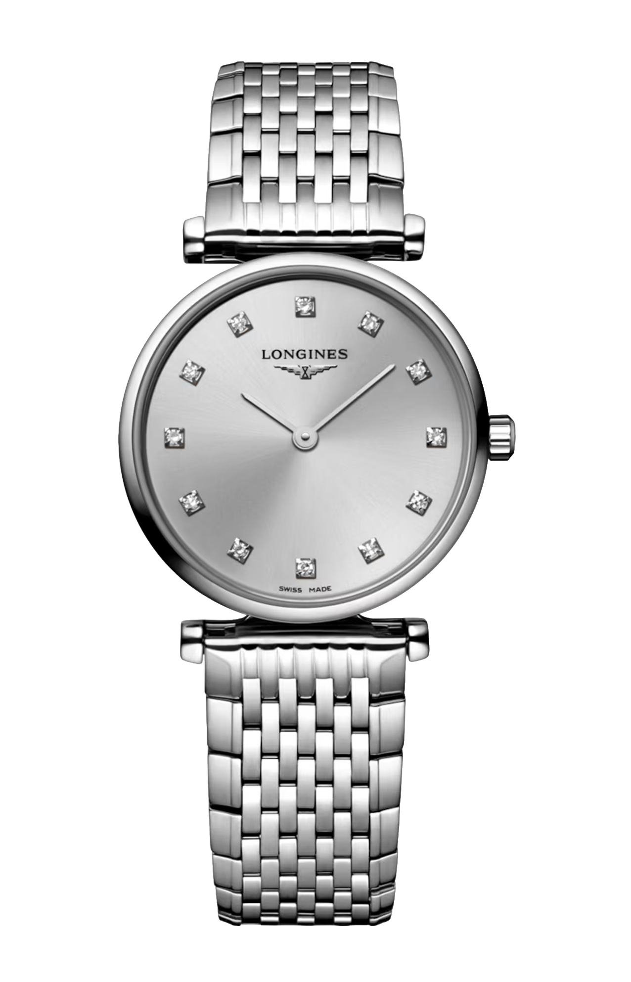 Orologio al quarzo, Ø 24.00 mm, acciaio inossidabile, L4.209.4.70.6 impermeabile fino a 3 bar, vetro zaffiro antigraffio. Quadrante grigio. Bracciale in acciaio inossidabile, con chiusura déployante a tripla sicurezza e meccanismo di apertura a pressione.