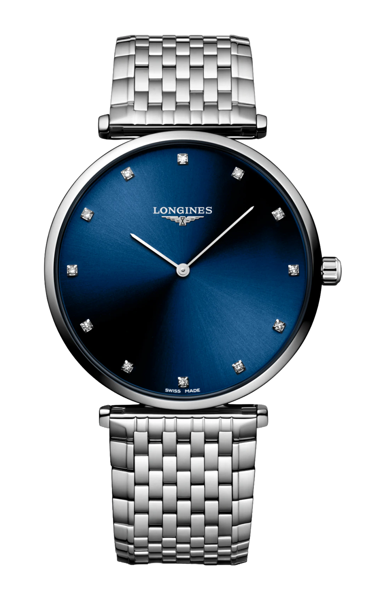 OROLOGIO AL QUARZO, Ø 38.00 MM, ACCIAIO INOSSIDABILE, L4.866.4.97.6 IMPERMEABILE FINO A 3 BAR, VETRO ZAFFIRO ANTIGRAFFIO. QUADRANTE BLU A RAGGI DI SOLE. BRACCIALE IN ACCIAIO INOSSIDABILE, CON CHIUSURA DÉPLOYANTE A TRIPLA SICUREZZA E MECCANISMO DI APERTURA A PRESSIONE.
