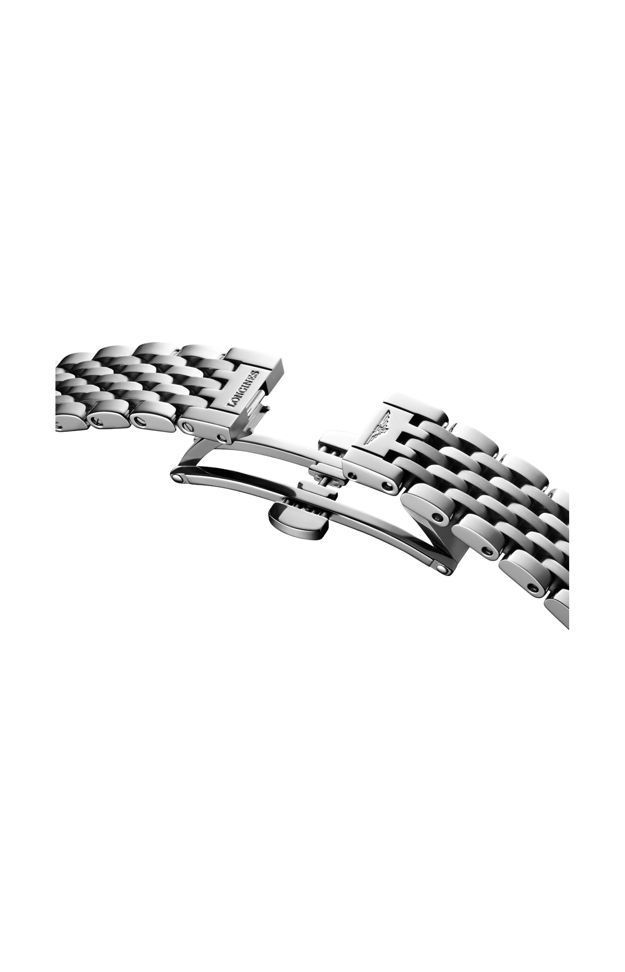 BRACCIALE IN ACCIAIO INOSSIDABILE, CON CHIUSURA DÉPLOYANTE A TRIPLA SICUREZZA E MECCANISMO DI APERTURA A PRESSIONE.