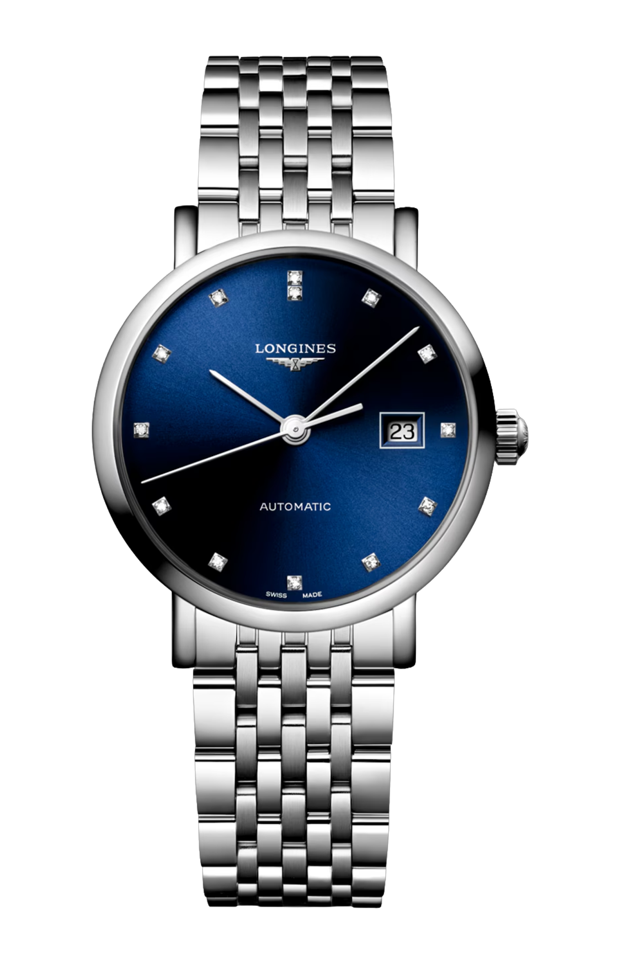 OROLOGIO AUTOMATICO, Ø 29.00 MM, ACCIAIO INOSSIDABILE, L4.310.4.90.6 DATE, MOVIMENTO MECCANICO A CARICA AUTOMATICA CON FREQUENZA DI 28'800 ALTERNANZE ORARIE E RISERVA DI CARICA DI CIRCA 45 ORE, BILANCIERE-SPIRALE IN SILICIO MONOCRISTALLINO. IMPERMEABILE FINO A 3 BAR, VETRO ZAFFIRO ANTIGRAFFIO. QUADRANTE BLU A RAGGI DI SOLE. BRACCIALE IN ACCIAIO INOSSIDABILE, CON CHIUSURA DÉPLOYANTE A TRIPLA SICUREZZA E MECCANISMO DI APERTURA A PRESSIONE.