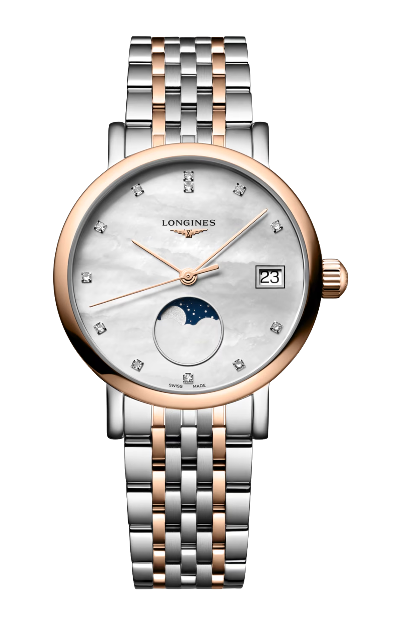 OROLOGIO AL QUARZO, Ø 30.00 MM, ACCIAIO INOSSIDABILE E LUNETTA GIREVOLE BIDIREZIONALE CON INSERTO SPAZZOLATO CIRCOLARE SOVRASTATO DA UNA COIFFE IN ORO ROSA 18 CARATI 5N, L4.330.5.87.7 RISERVA DI CARICA DATE. IMPERMEABILE FINO A 3 BAR, VETRO ZAFFIRO ANTIGRAFFIO CON TRATTAMENTO ANTIRIFLESSO MULTISTRATO SU ENTRAMBI I LATI. QUADRANTE MADREPERLA BIANCA. BRACCIALE IN ACCIAIO INOSSIDABILE E LUNETTA GIREVOLE BIDIREZIONALE CON INSERTO SPAZZOLATO CIRCOLARE SOVRASTATO DA UNA COIFFE IN ORO ROSA 18 CARATI 5N, CON CHIUSURA DÉPLOYANTE A TRIPLA SICUREZZA E MECCANISMO DI APERTURA A PRESSIONE.