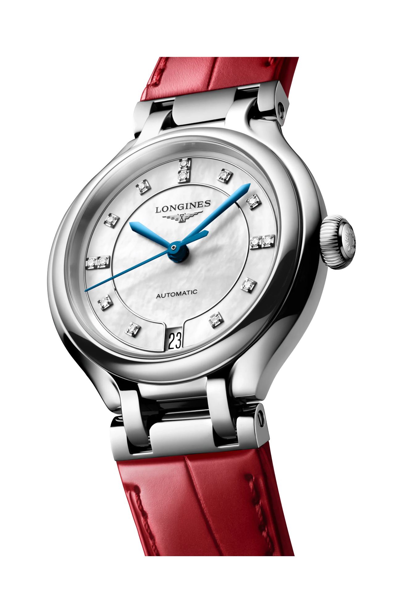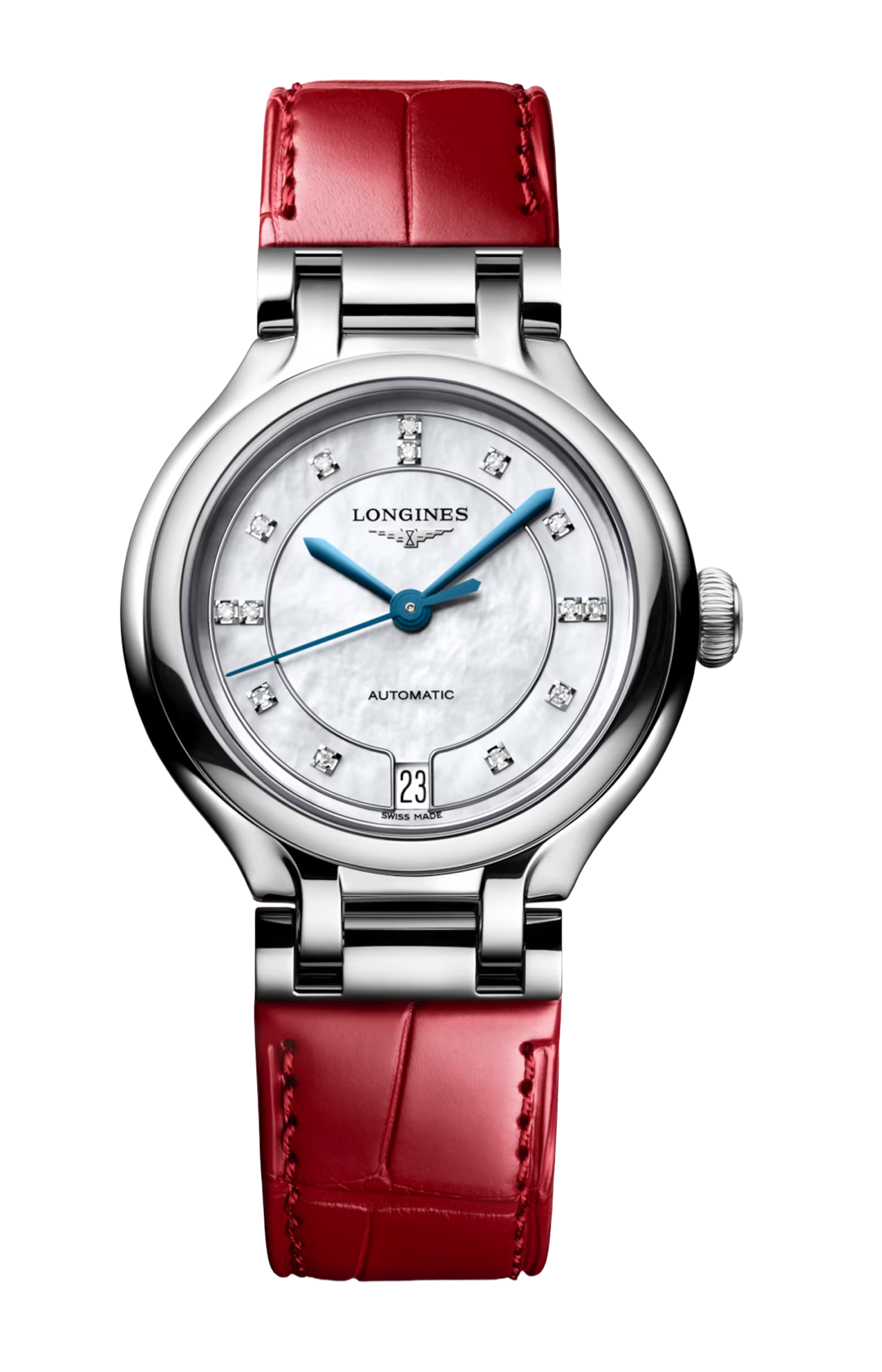 OROLOGIO AUTOMATICO, Ø 34.00 MM, ACCIAIO INOSSIDABILE, L8.124.4.87.2 DATE, MOVIMENTO MECCANICO A CARICA AUTOMATICA CON FREQUENZA DI 25'200 ALTERNANZE ORARIE E RISERVA DI CARICA DI CIRCA 72 ORE, BILANCIERE-SPIRALE IN SILICIO MONOCRISTALLINO. IMPERMEABILE FINO A 3 BAR, VETRO ZAFFIRO ANTIGRAFFIO CON TRATTAMENTO ANTIRIFLESSO MULTISTRATO SU ENTRAMBI I LATI. QUADRANTE MADREPERLA BIANCA. BRACCIALE IN CINTURINO IN ALLIGATORE, CON CHIUSURA DÉPLOYANTE A TRIPLA SICUREZZA E MECCANISMO DI APERTURA A PRESSIONE.