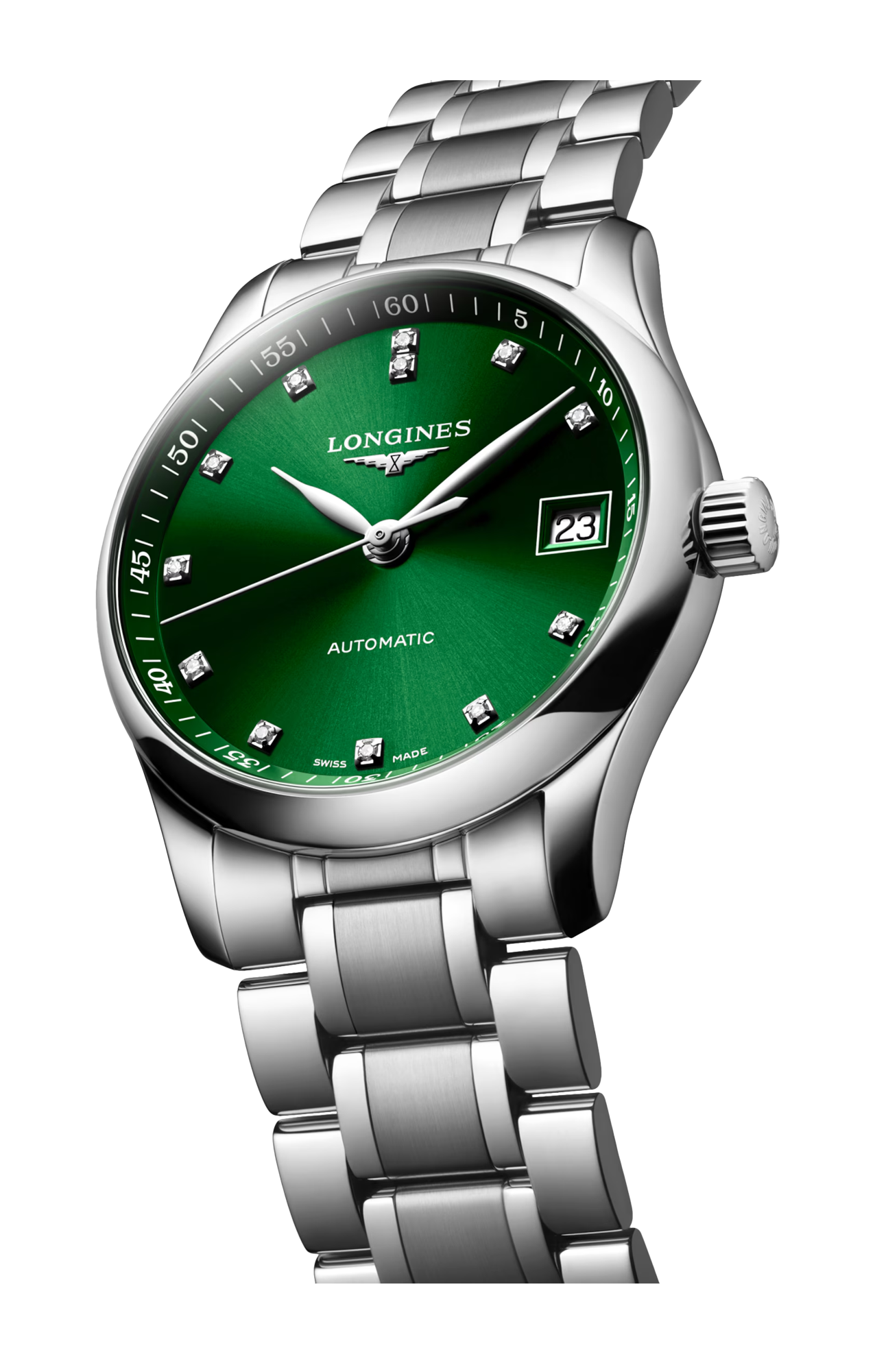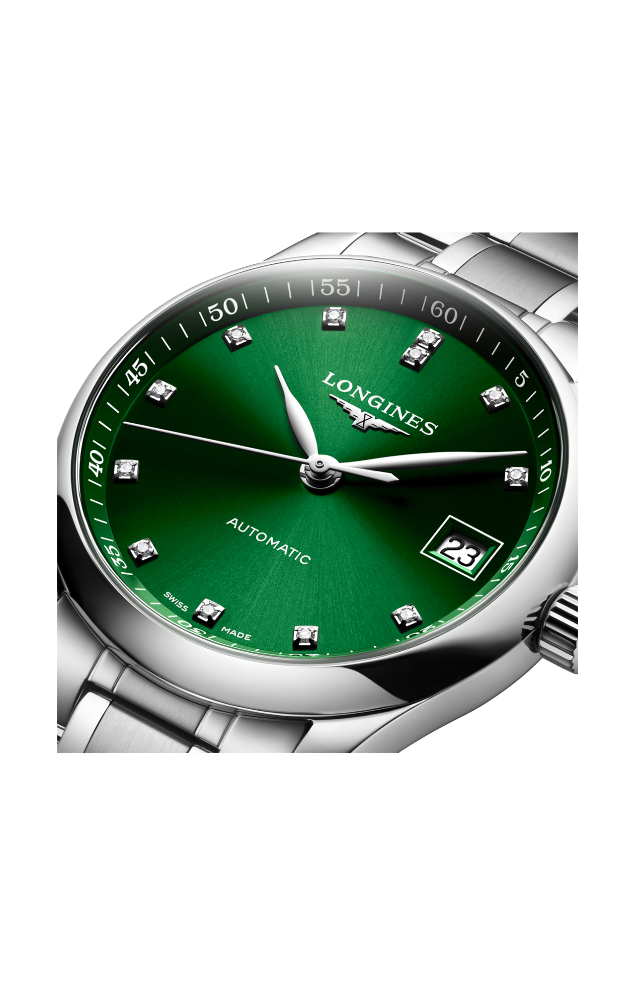 Date, movimento meccanico a carica automatica con frequenza di 25'200 alternanze orarie e riserva di carica di circa 72 ore, bilanciere-spirale in silicio monocristallino. Impermeabile fino a 3 bar, vetro zaffiro antigraffio con trattamento antiriflesso multistrato su entrambi i lati. Quadrante verde. Bracciale in acciaio inossidabile, con chiusura déployante a tripla sicurezza e meccanismo di apertura a pressione.