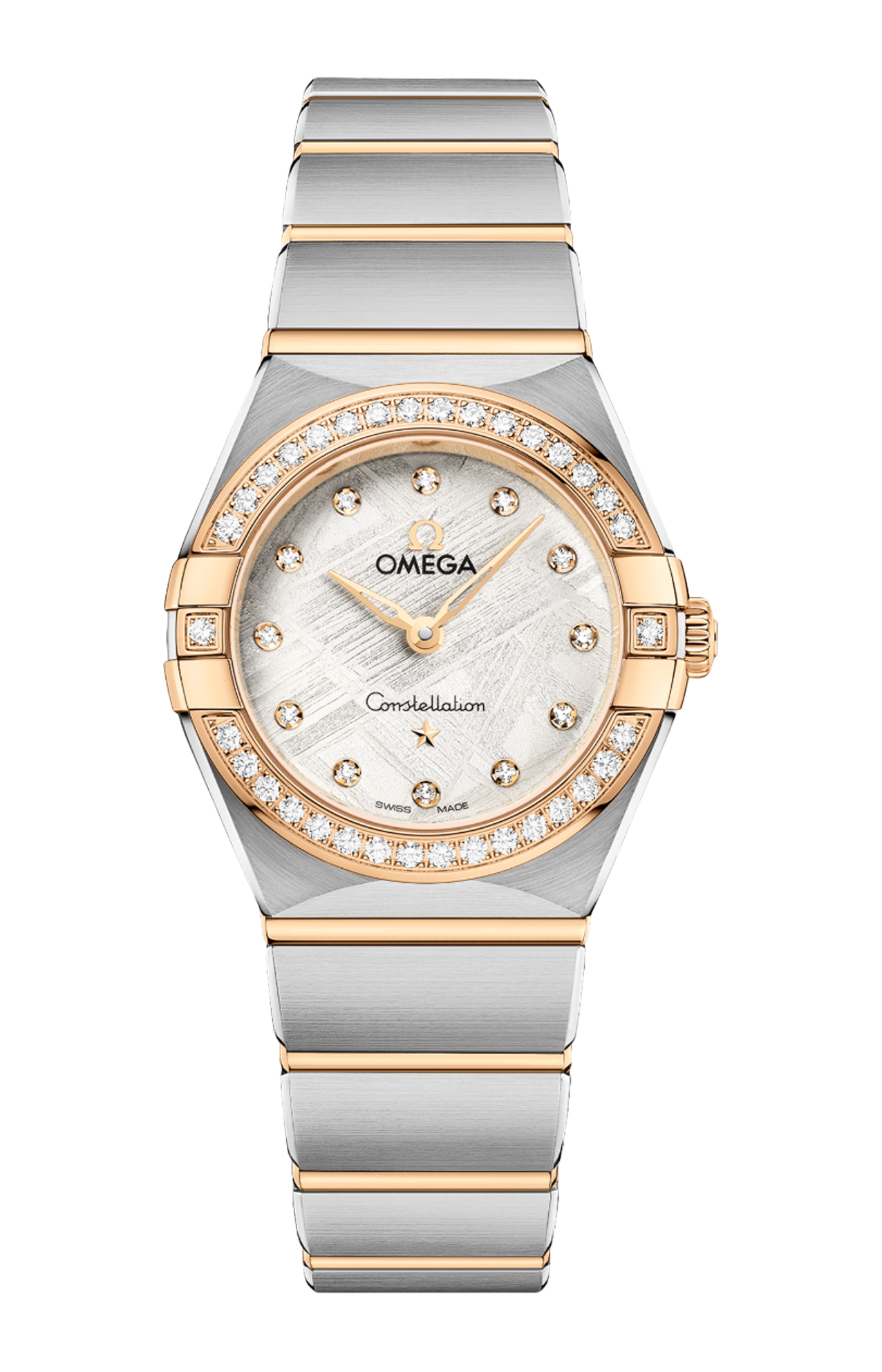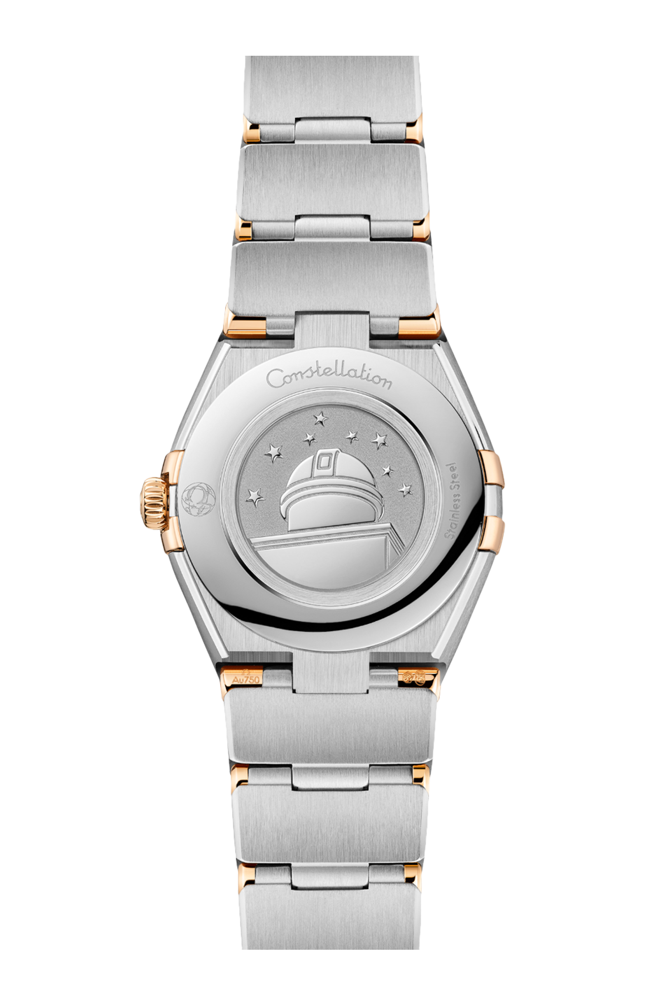 L’orologio presenta una cassa da 25 mm corredata da un bracciale “Mono Rang” in acciaio inossidabile e oro giallo 18K e integra molte delle caratteristiche distintive della linea Constellation, come le griffe lucide, le sfaccettature a mezzaluna e la lunetta tempestata di diamanti.