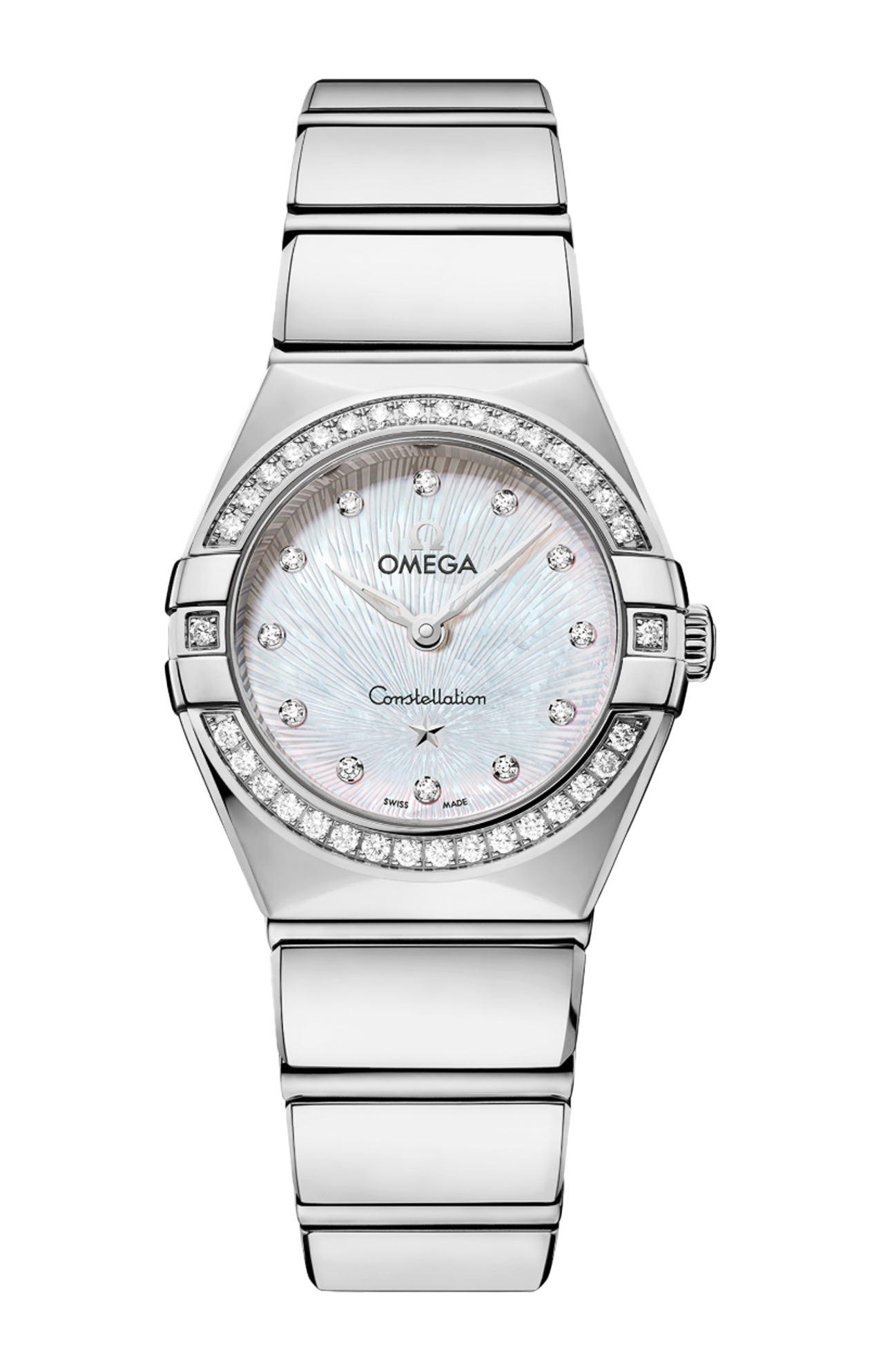 Unione di stile raffinato e precisione stellare, l'iconico Constellation di Omega è caratterizzato dalla celebre cassa con sfaccettature a mezzaluna e griffe lucide ai lati.