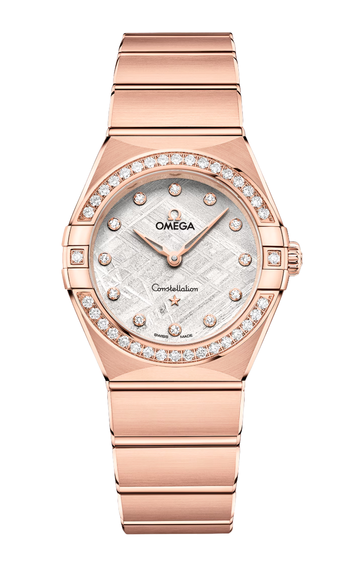 L’orologio presenta una cassa da 28 mm corredata da un bracciale “Mono Rang” in oro Sedna™ 18K e integra molte delle caratteristiche distintive della linea Constellation, come le griffe lucide, le sfaccettature a mezzaluna e la lunetta tempestata di diamanti.