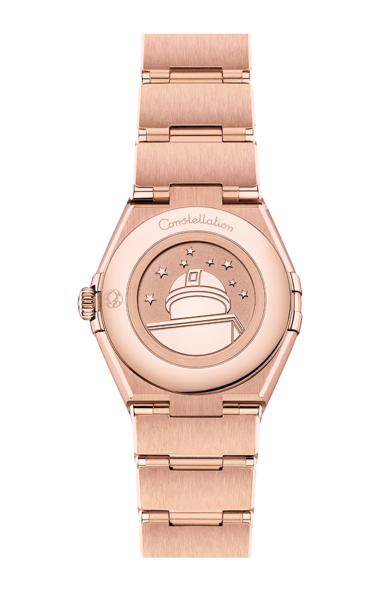 Alloggiato dietro al fondello caratterizzato da un medaglione Constellation con impressa l’effigie dell’osservatorio, anima l’orologio il calibro Omega 4061.